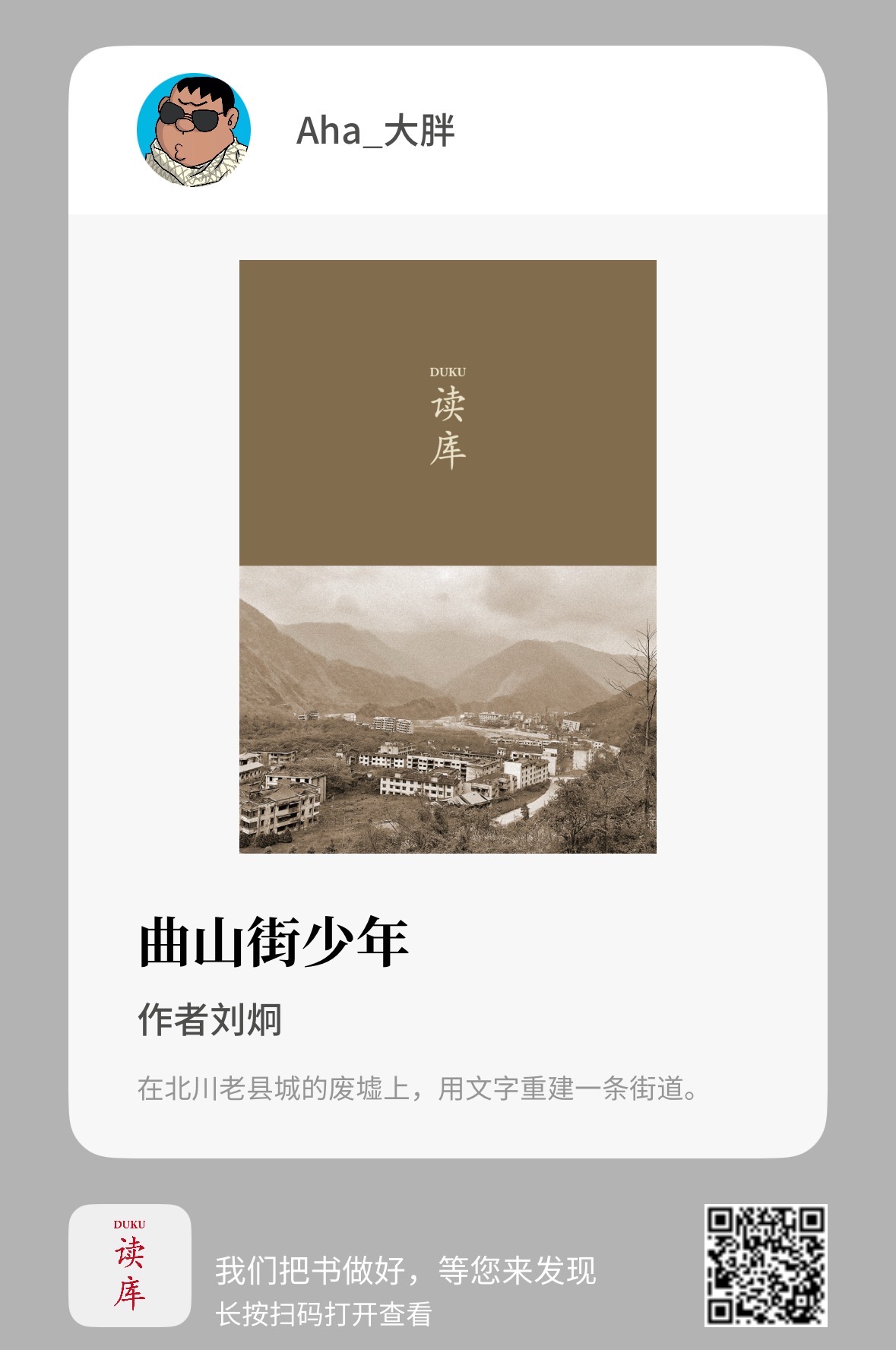 #大胖的读书记录# 2506期的读库,我很喜欢其中的两篇。一篇是人至中年的作者记述少年时同学的文章,我读的很有感触,因为作者虽稍长我一些,但是他笔下一个个生龙活虎的同学,简直是我们的代笔,谁没有一个学霸门门功课优秀考入最好的高中,但高考失利和清华失之交臂;谁没有一个早熟顽劣的同学早早开始抽烟混社会?谁没有一个同学在毕业后回到家乡开始走和大城市打工群不一样的路? 谁没有一个家里经济条件优越,早早用上电脑是孩子们崇拜的条件的富家子弟?