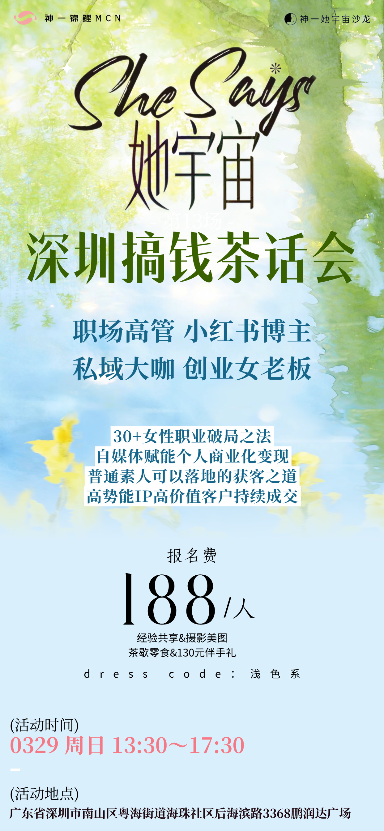 线下实体店美容、普拉提、青年社区微享空间活动空间投资人,参与线下实体店经营管理,筹办线下活动,做活动主理人。