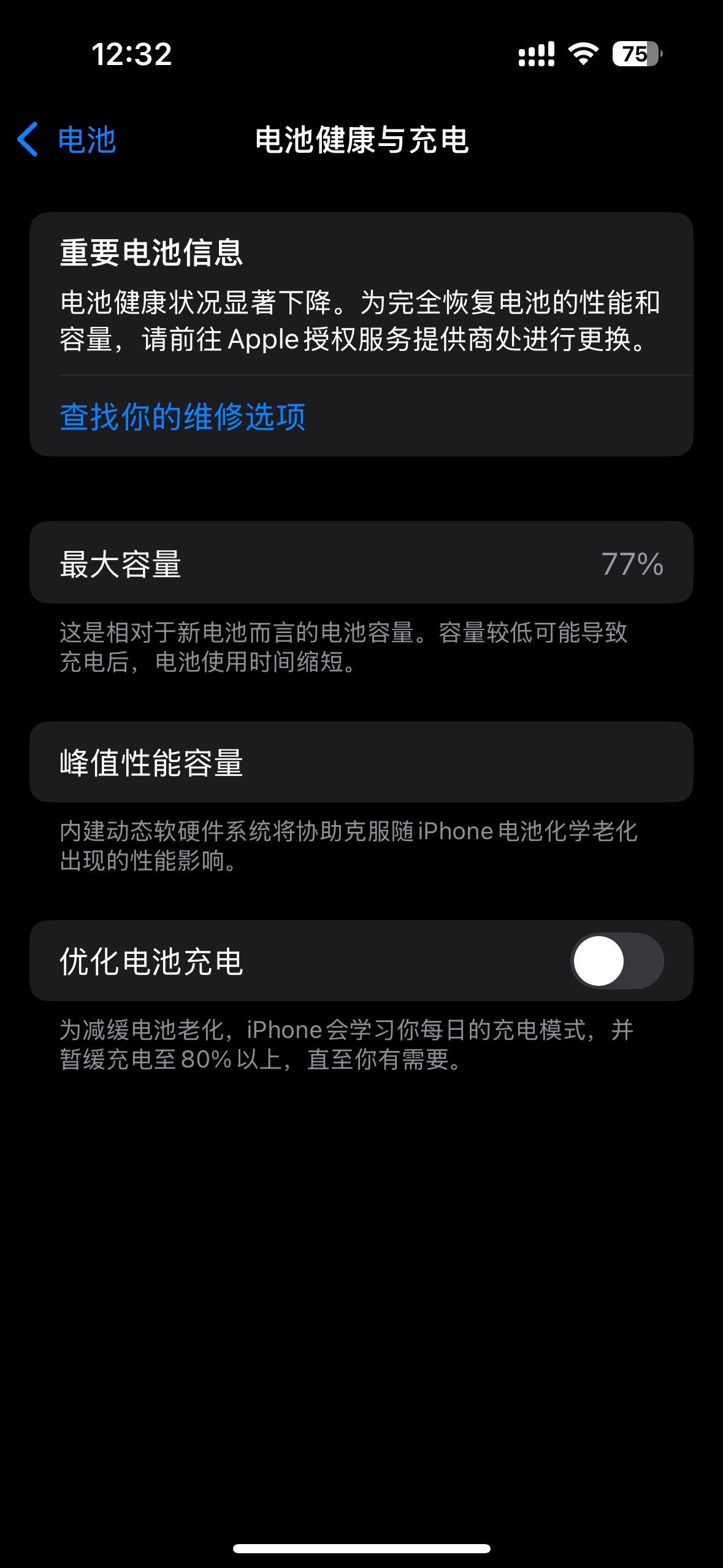 电池健康度下降到了77