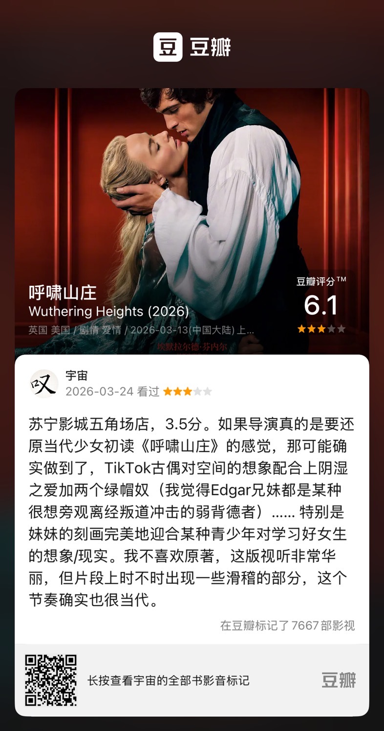 此外很多情节都很有意思(比如波兰工人装修的部分)有待重看。我在看电影之前买了一些榅桲,带去和朋友分享。它有些小小的不均匀的绒毛,不及Erice镜头下那么美,Erice把López作画也都拍得非常美…… 这些在他的工作方法下是等待下也许会有的收获。