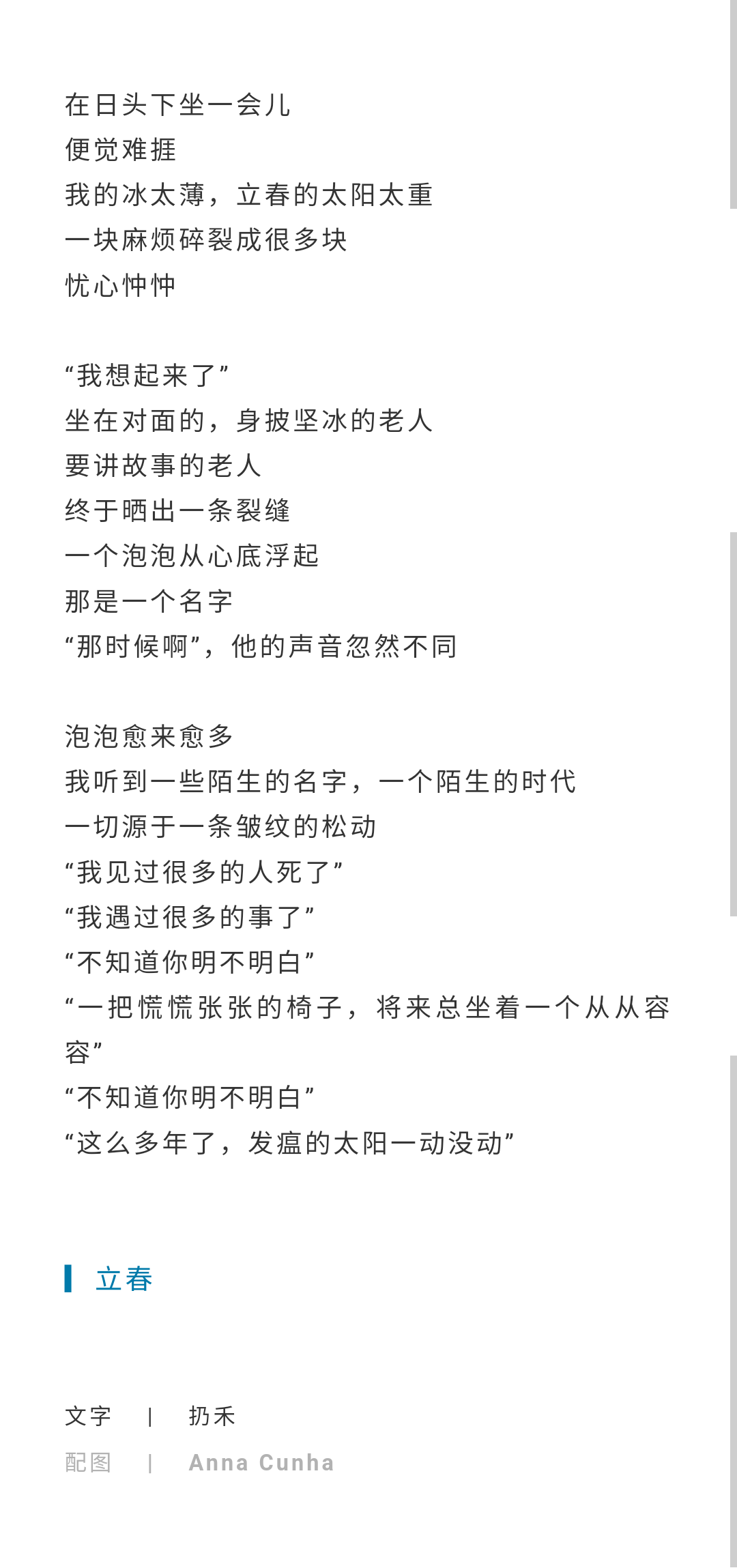 “我的冰太薄,立春的太阳太重”