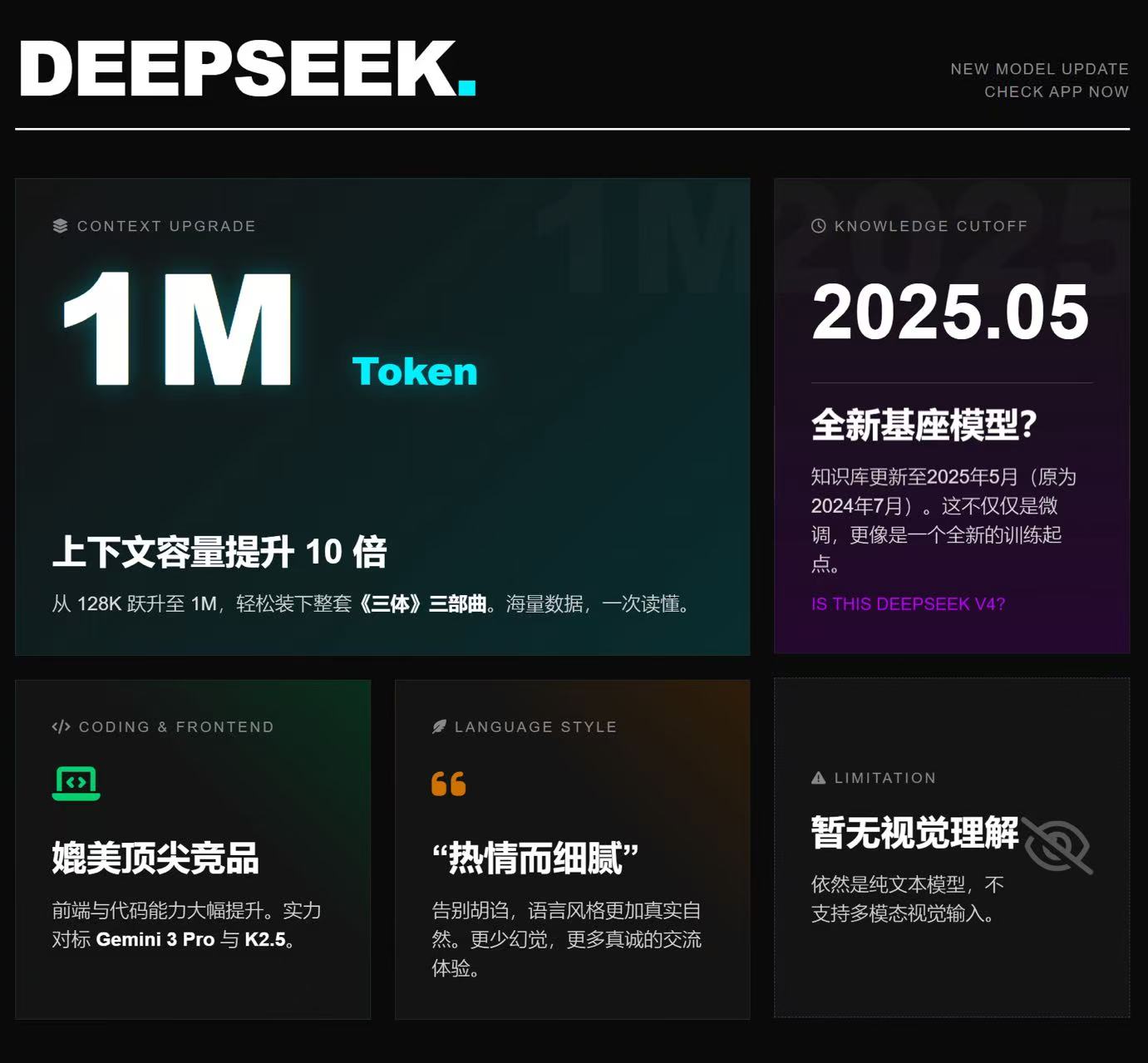 deepseek 新模型开始灰度测试(更新情况 现在是基座模型,还不是v4本体)
