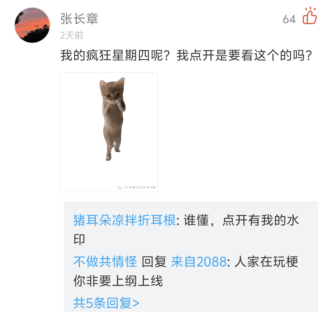 猪耳朵凉拌折耳根: 哈哈哈哈在广场刷动态呢,看到个眼熟的表情包点开居然发现有自己的水印。这抽象表情包我整了一提溜,都给你们 @张长章