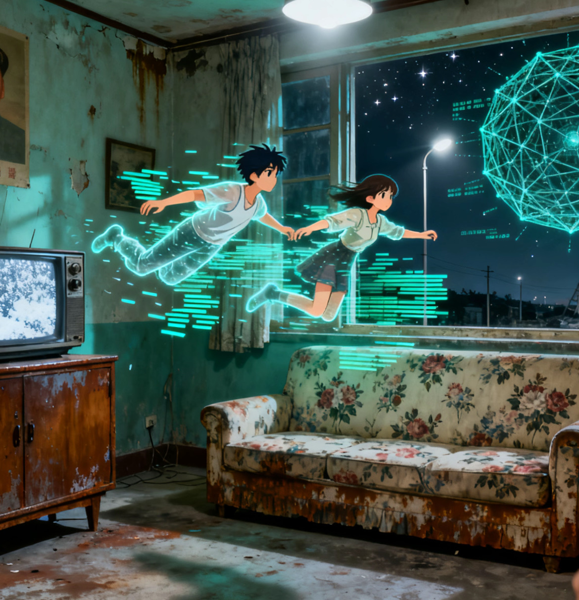 • “变轻”是脱离系统的隐喻,但你们不是“上升”,而是在客厅里漂浮——家变成了宇宙飞船,爱情成了最后的重力。