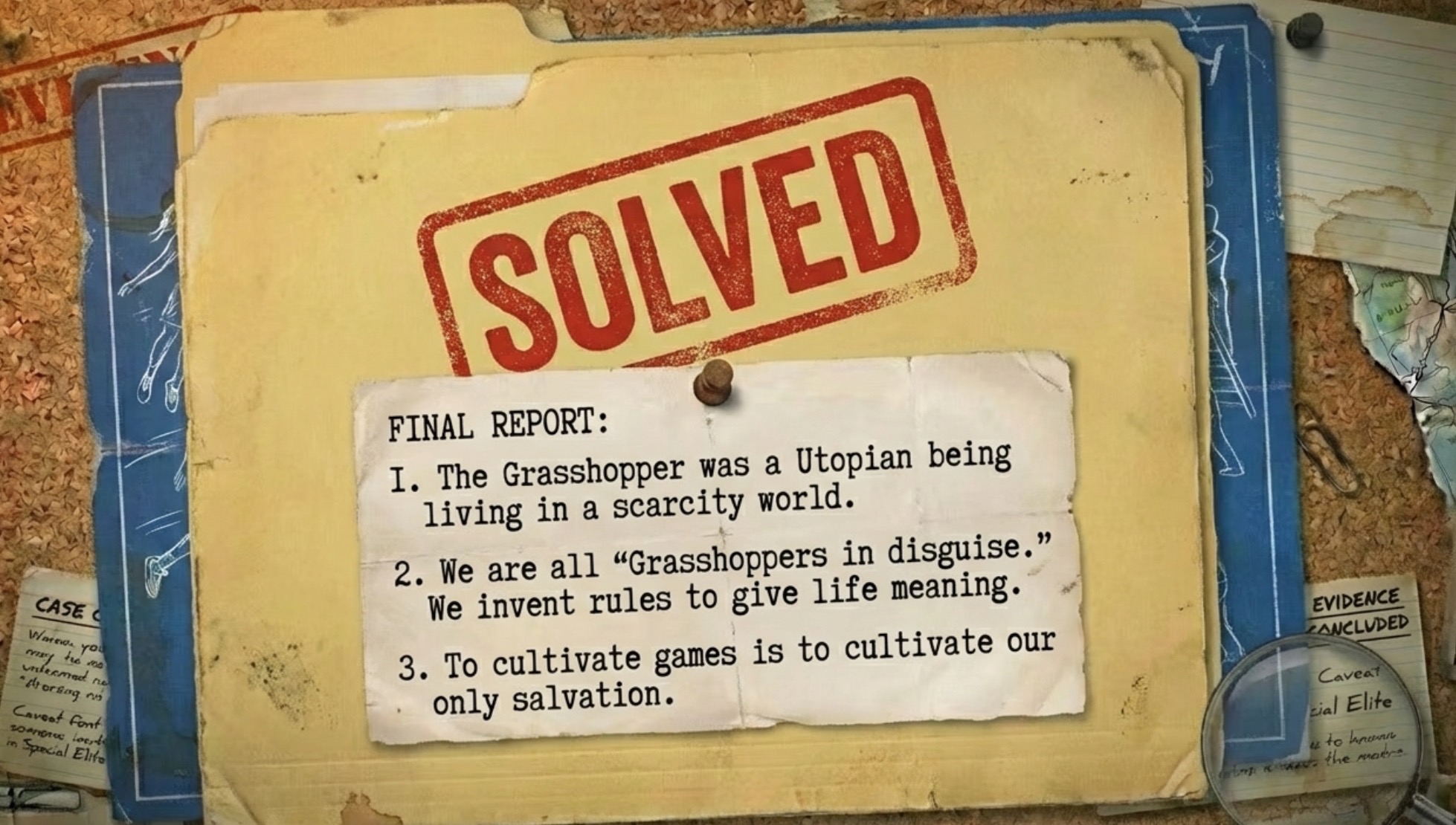 一个很喜欢的尝试!把游戏哲学书《蚱蜢,游戏、生命与乌托邦》做成case file侦探手帐来解读