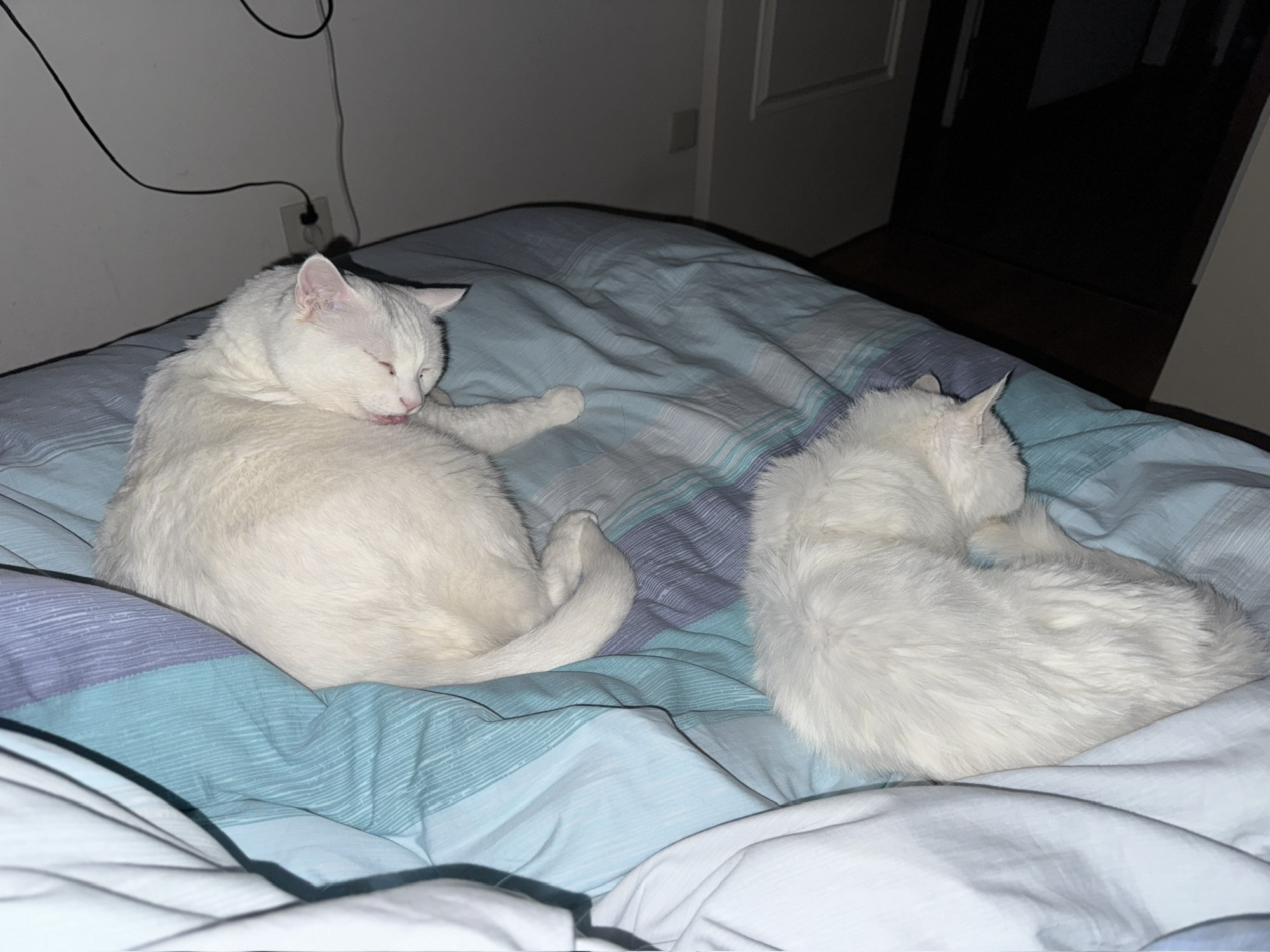 两个崽子今天也都破天荒的陪我睡了 过一会儿就被我抱着哭一顿 哭完就耐心舔干