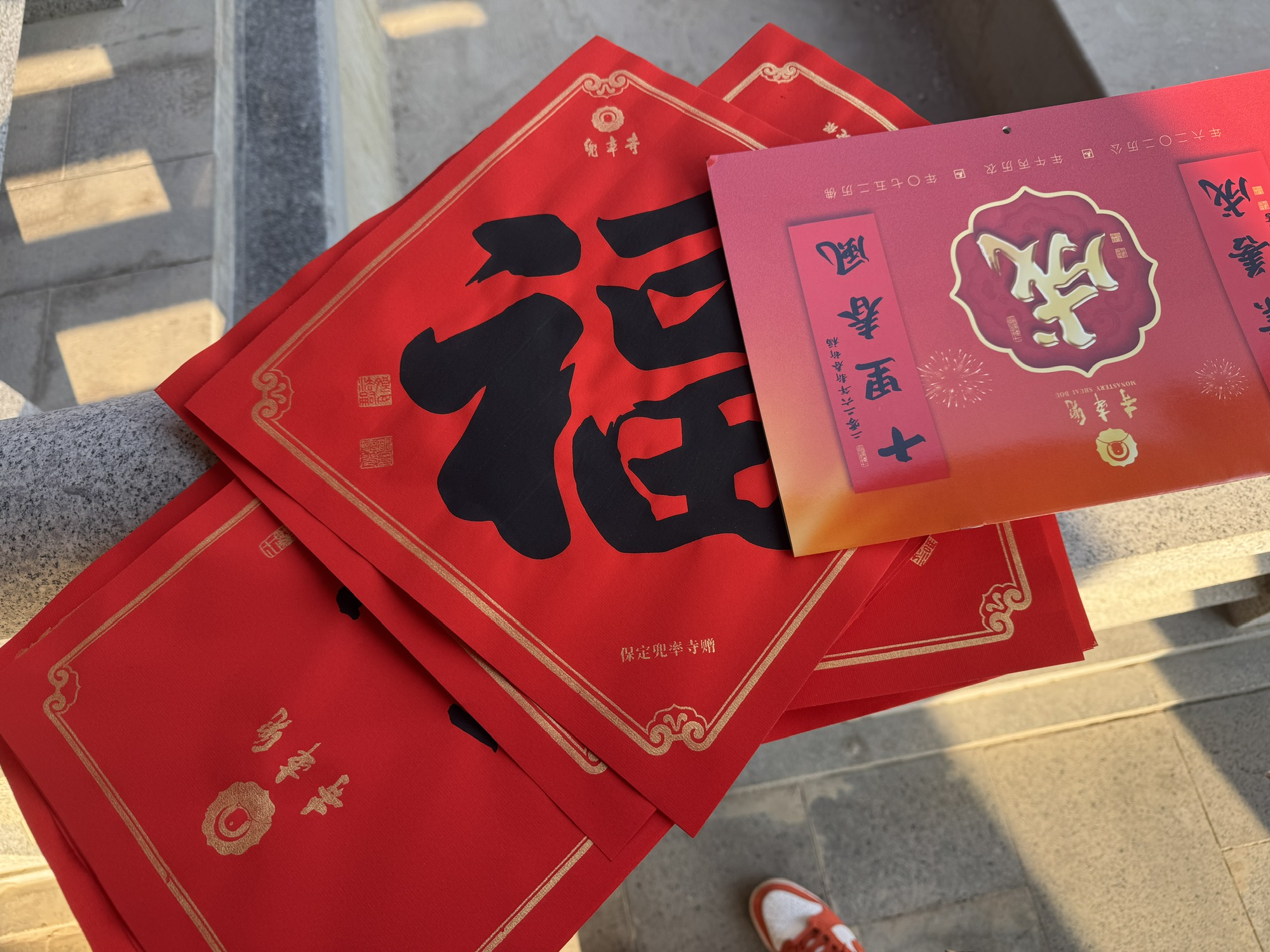 今天去祈福🙏,还得到了福字和挂历😉。