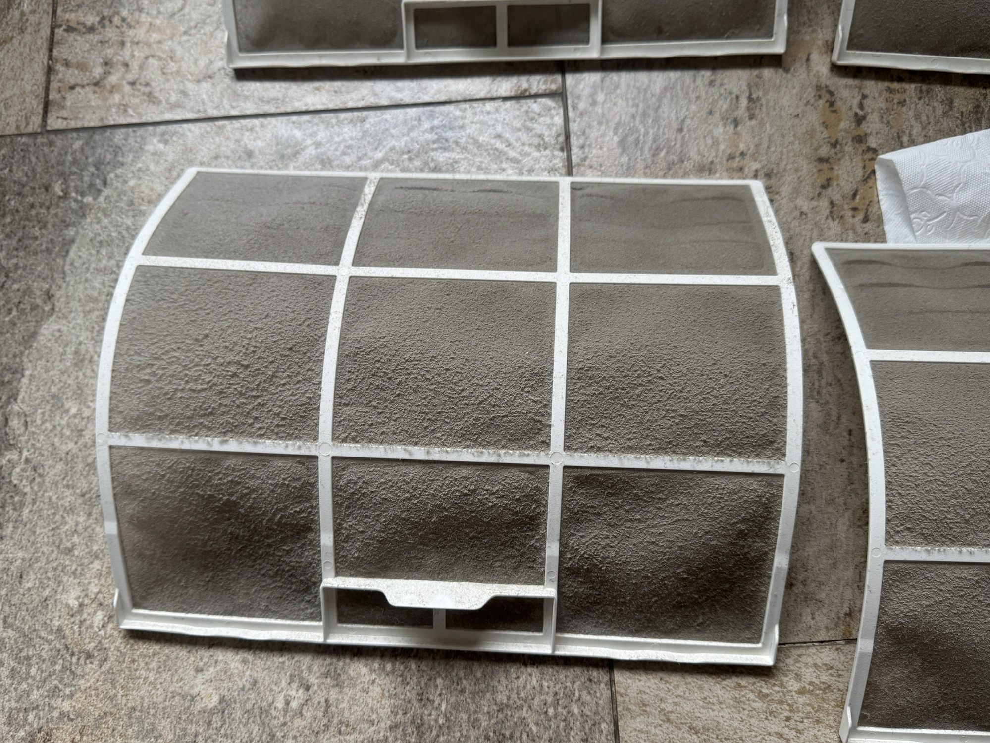 趁还没开空调前,把滤网洗一下,好脏!还掉下来两只雷霆死飞蛾