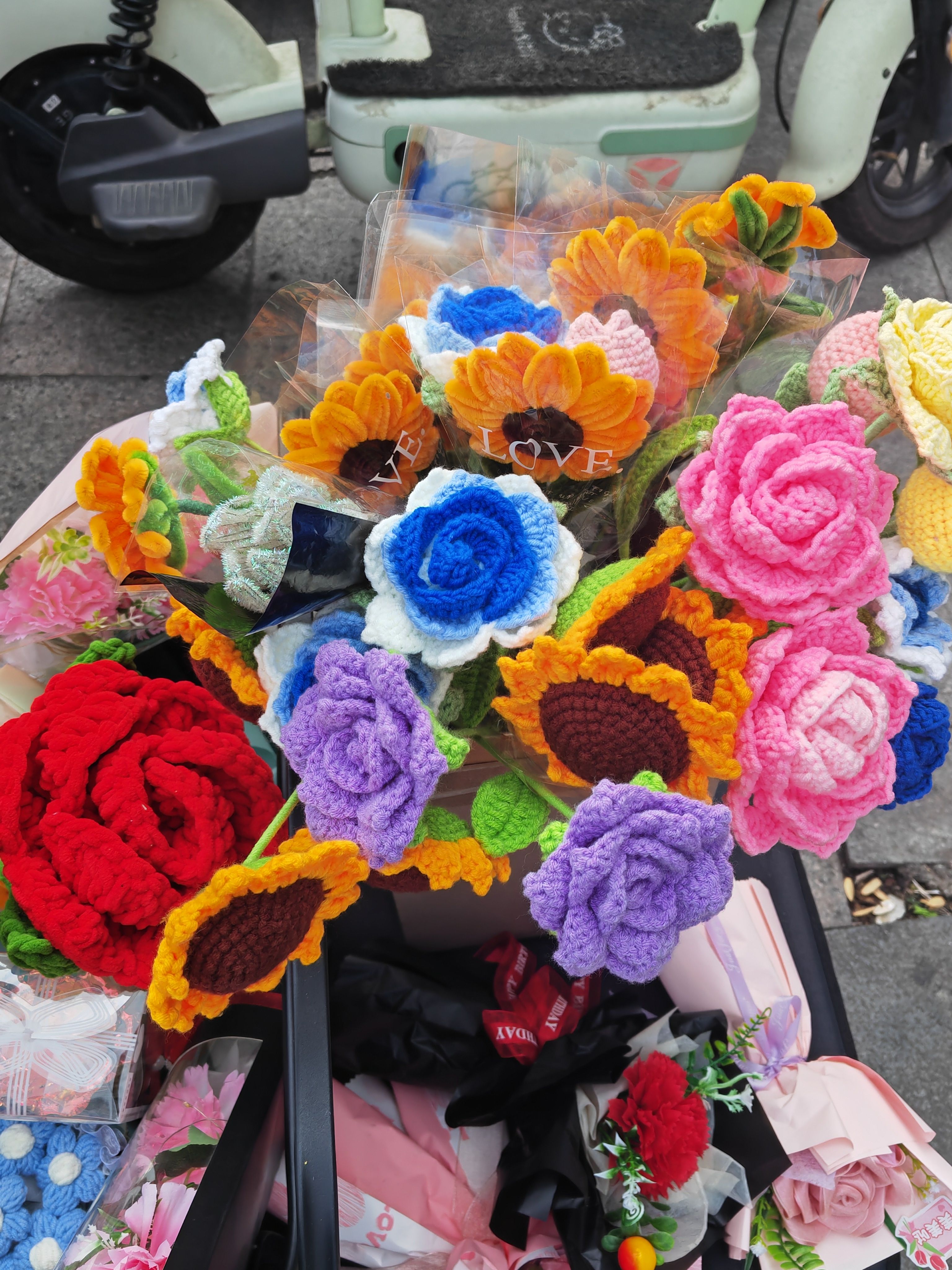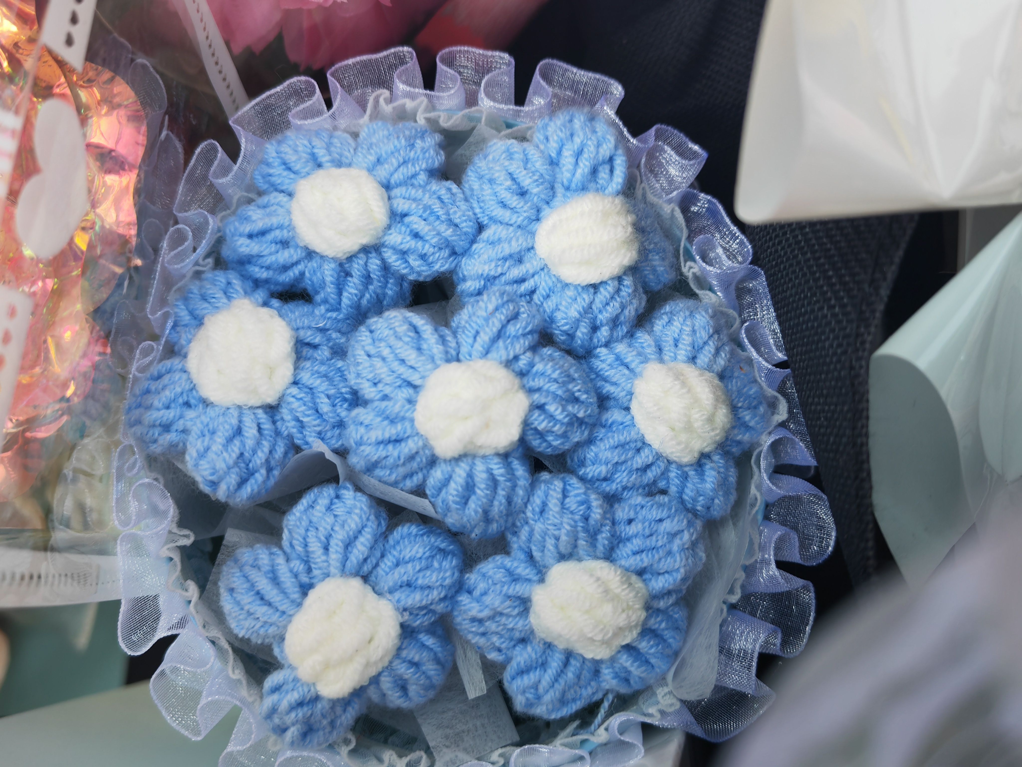 手工毛线花也是不错的选择。