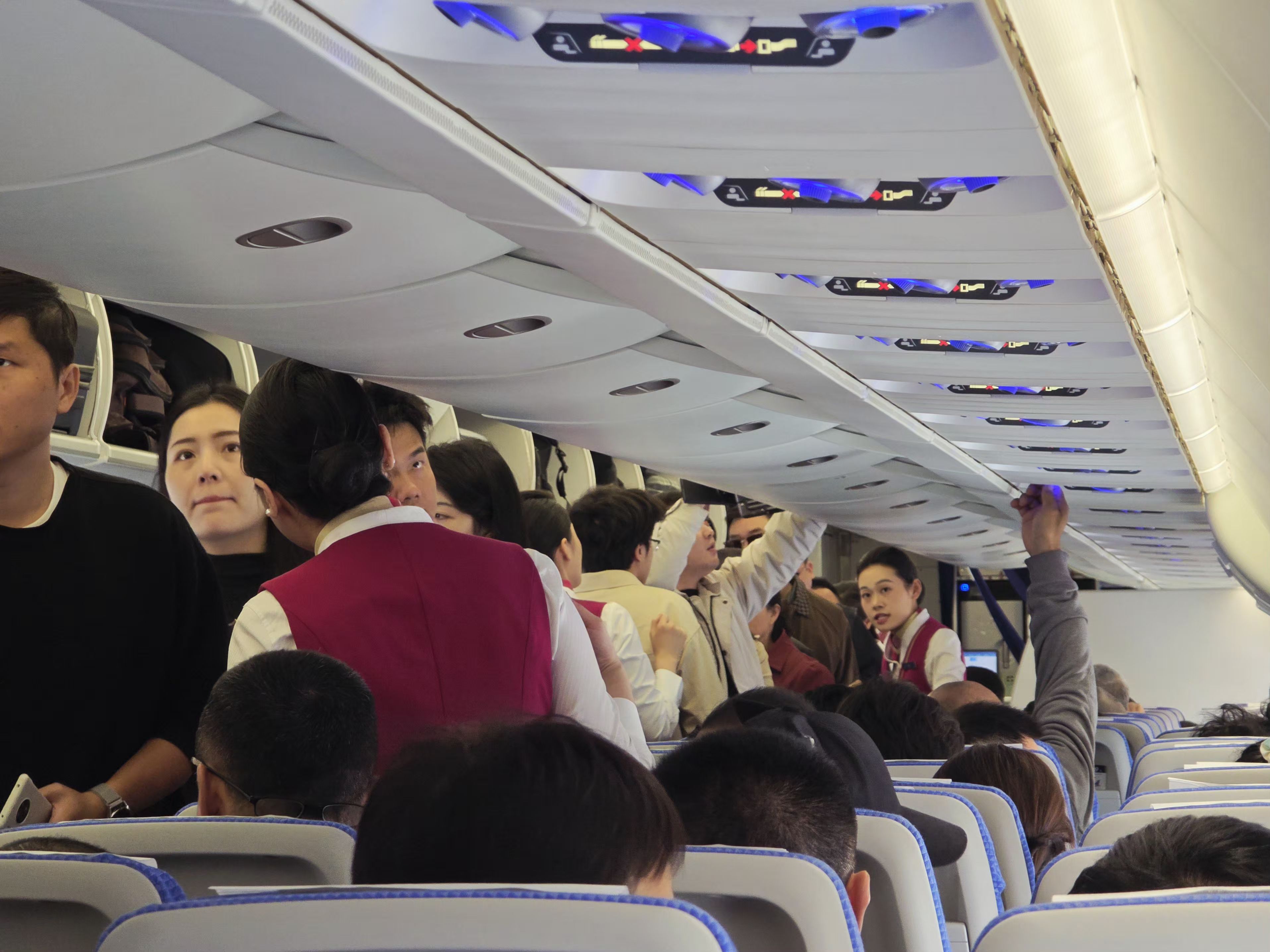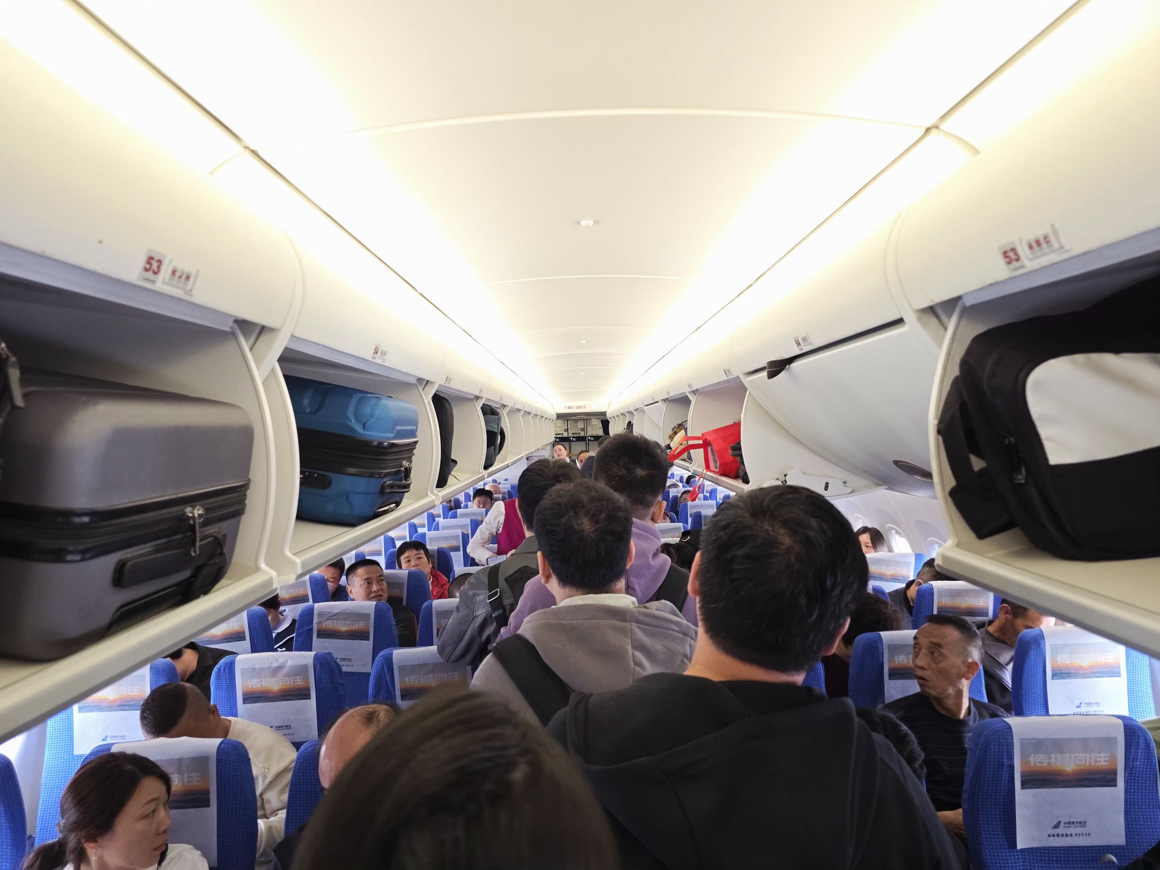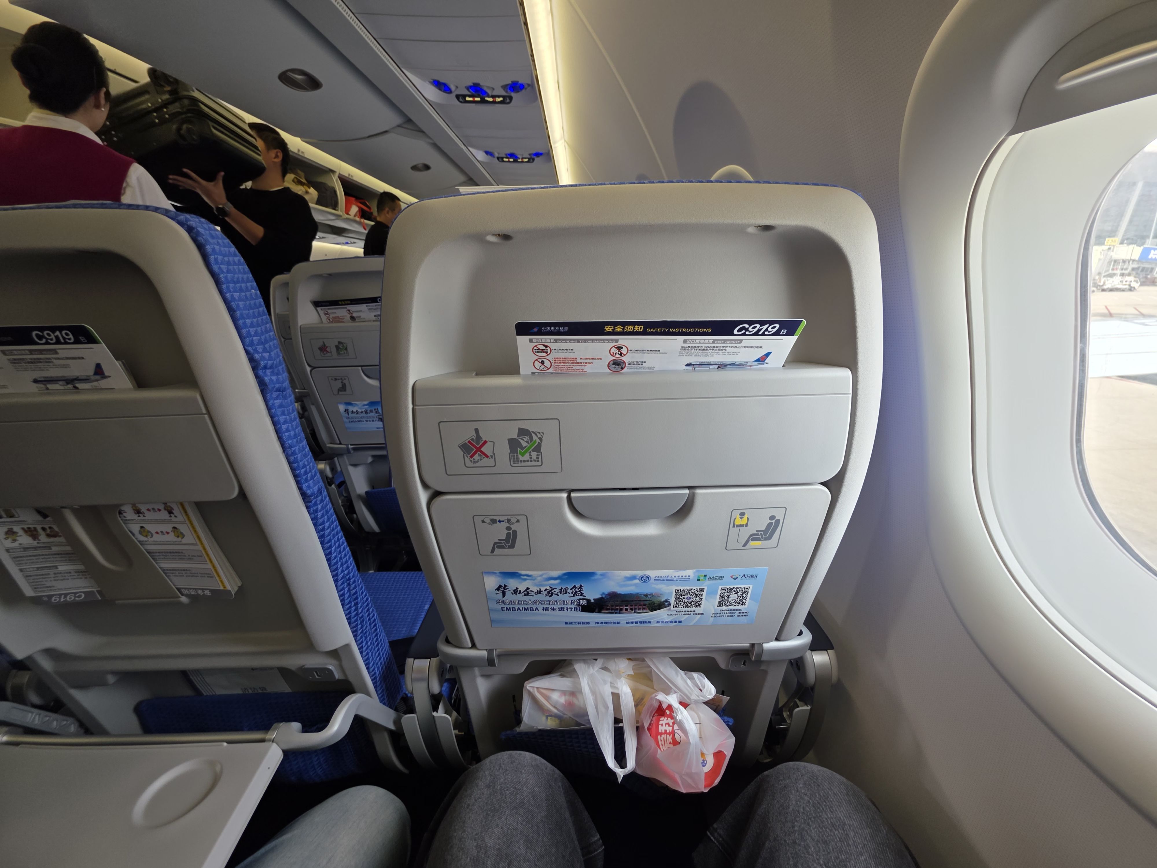 第一次坐C919,南航的。进来感觉很亮,很新,空间和其他机型差不多。