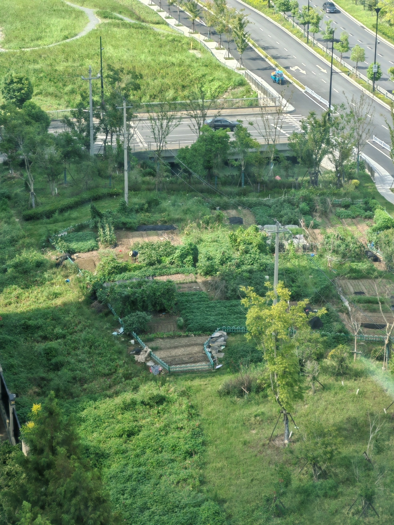 后来政府开始搞绿化 其他菜地都被刨掉了 就只剩这一块围起来的独自留下来了