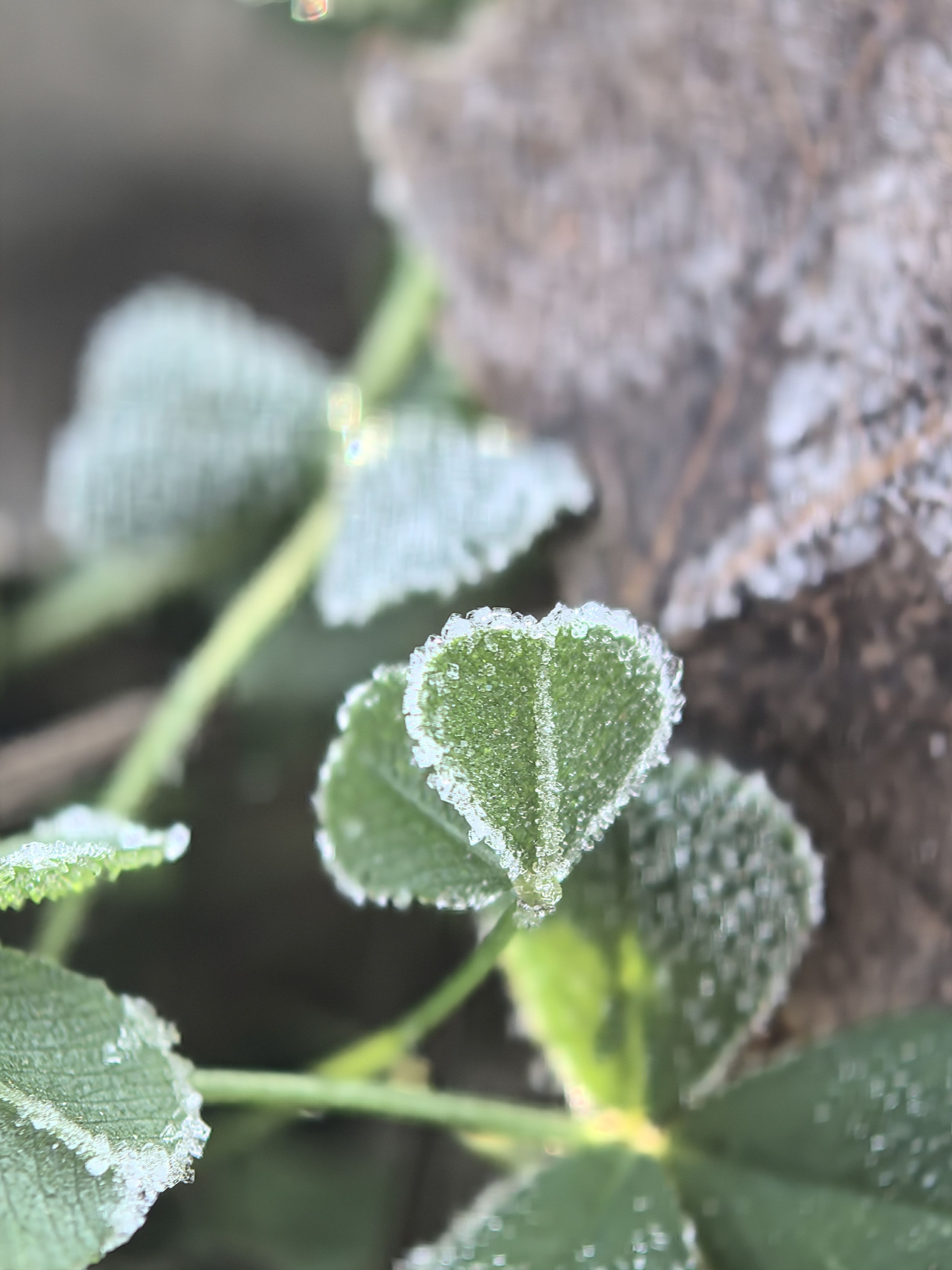 从雾气水汽朦朦似山水画,到凝了霜的小叶子,再到那一地秋色~