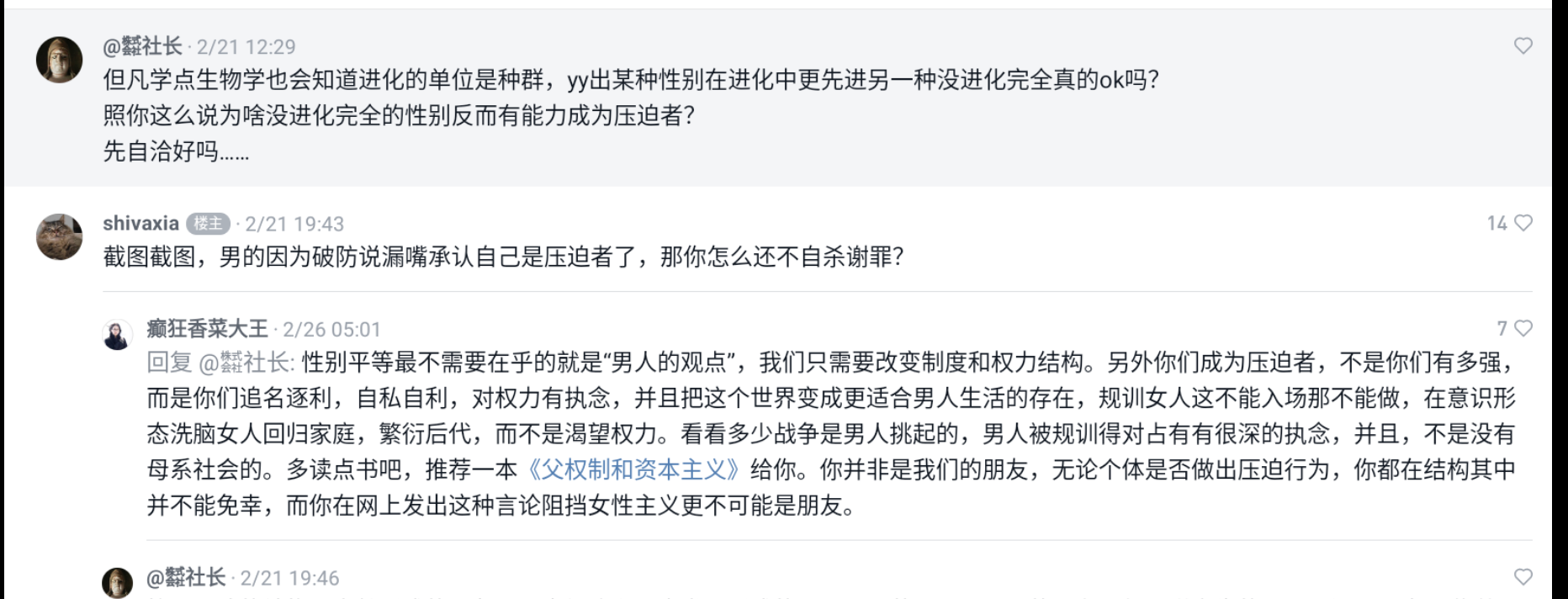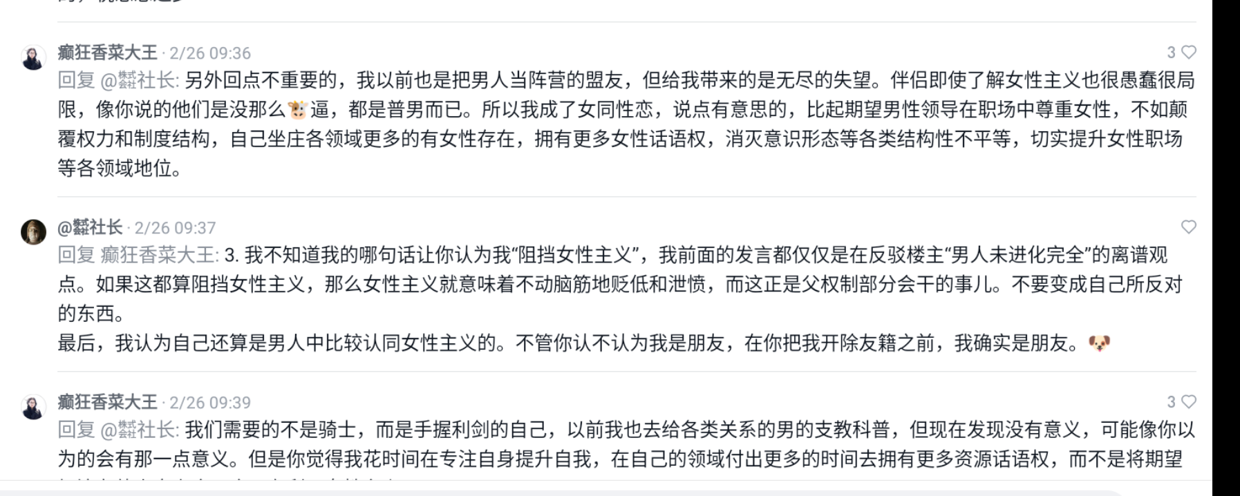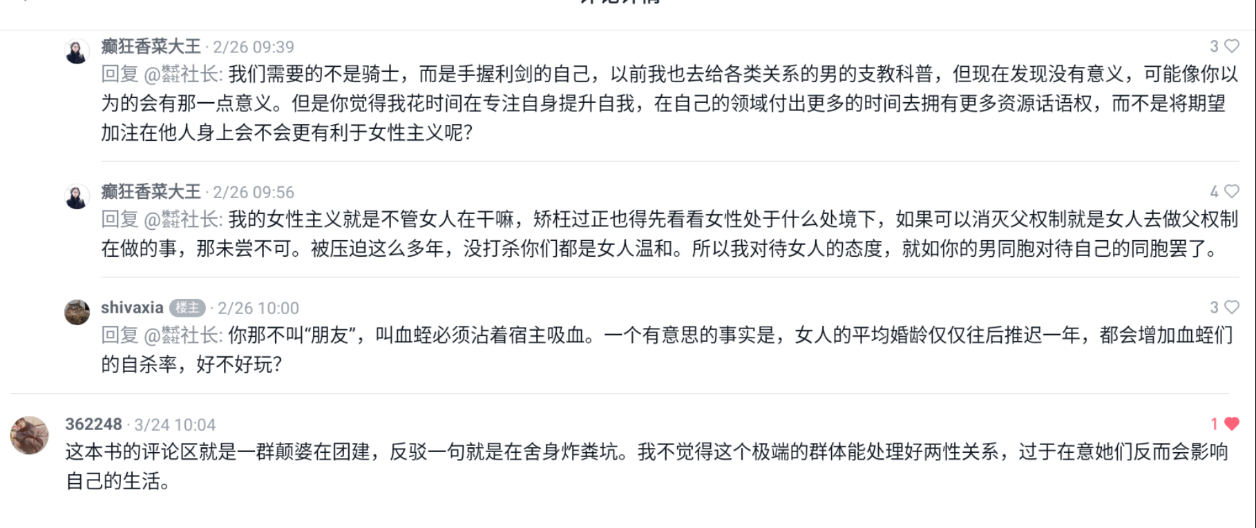 极端女权真的太吓人了!仅仅因为互动留言人的身份是男性,就让对方谢罪自杀!天呐😲