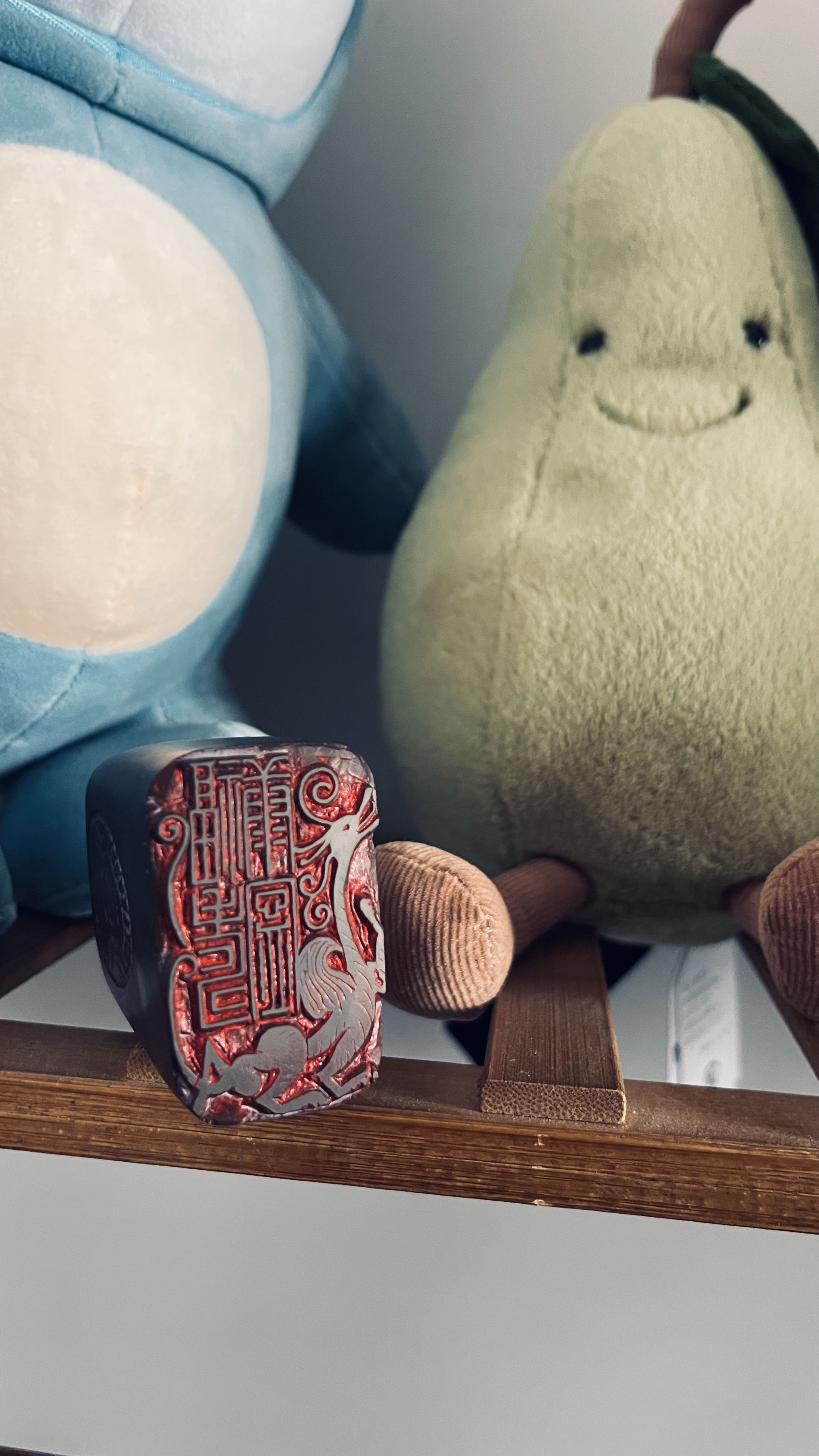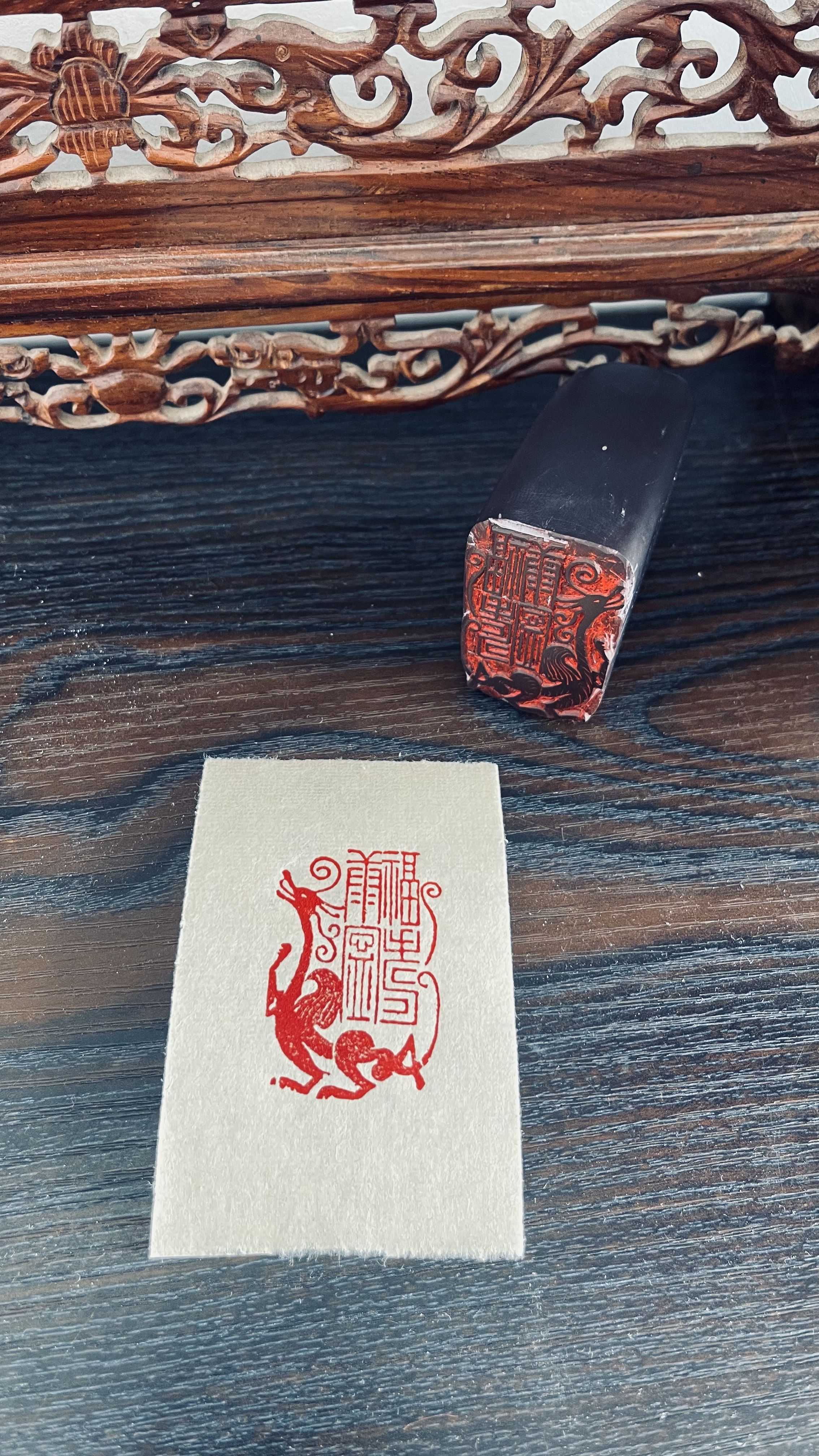 一方朱印,篆刻“福寿康宁”,龙腾其间,祥瑞自来,晕染出岁月静好的祝福,这枚印章刻得我的手的肿了,(石头太硬的原因))不过很开心,满满的成就感!