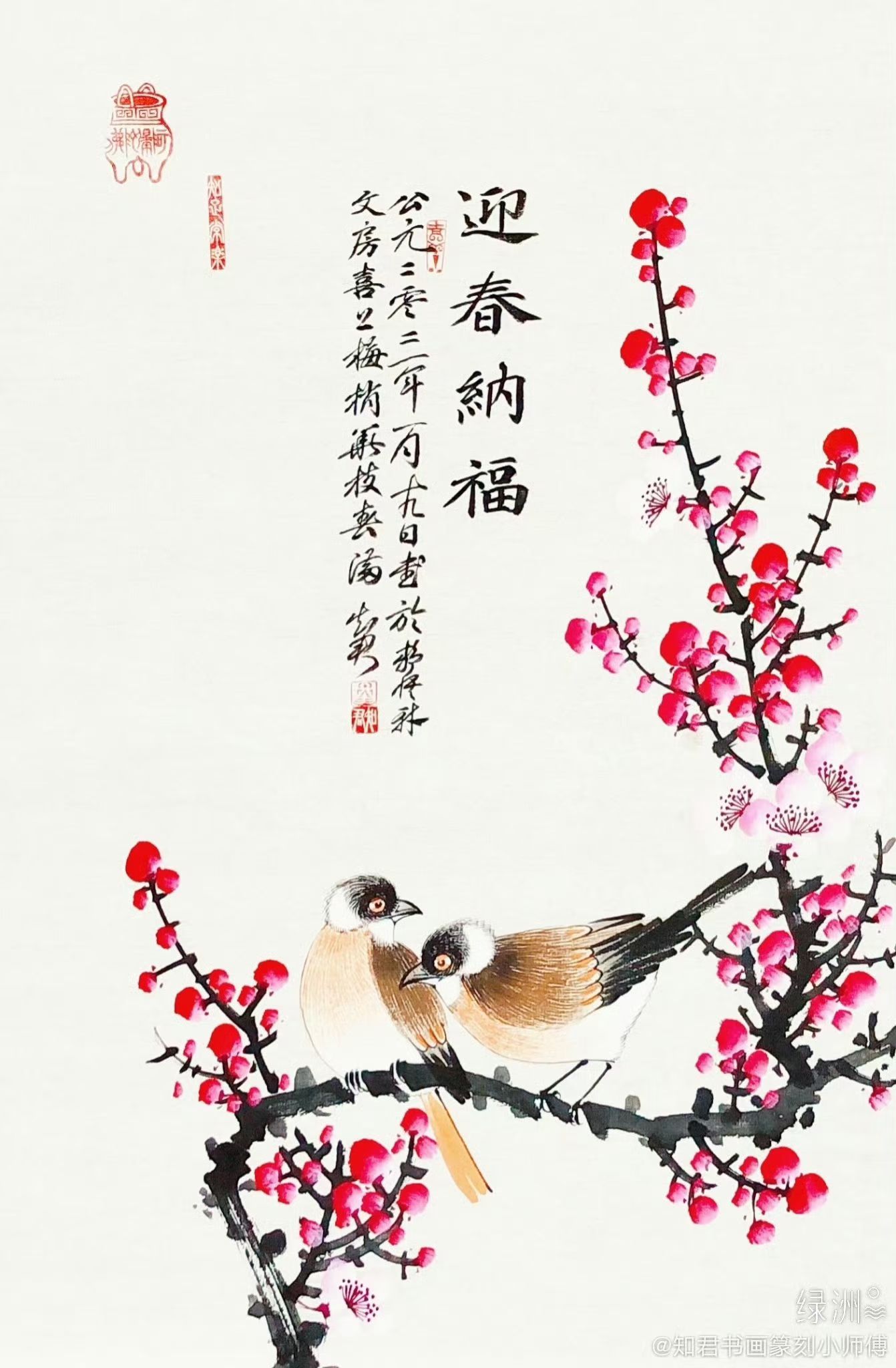 春日枝头,梅影横斜,鸟语呢喃。