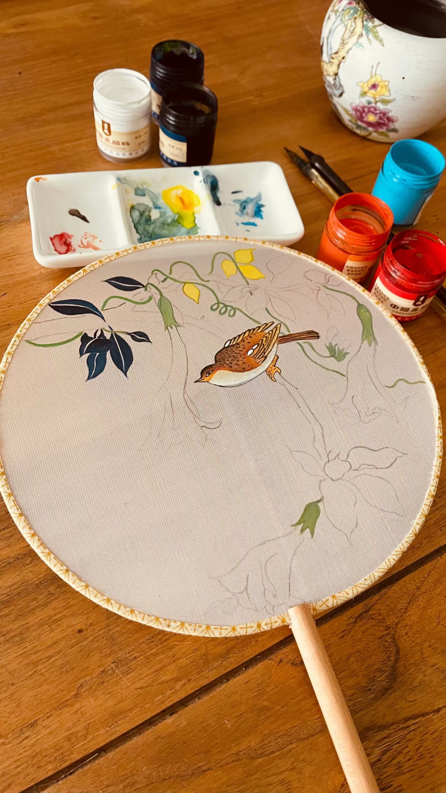 手绘团扇,一笔一画皆是心意。