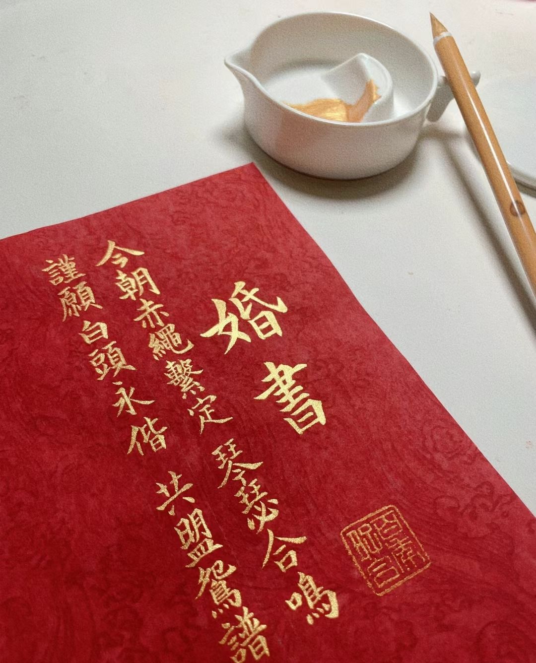 红纸金字,墨香晕染,一笔一划皆是承诺。婚书承载的不仅是仪式,更是两颗心的交融与守护。愿岁月温柔,共白首。