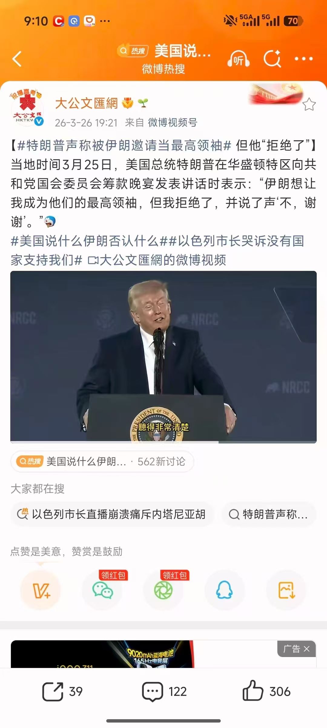 “伊朗想让我成为他们的最高领袖,但我拒绝了,并说了声‘不,谢谢'。"