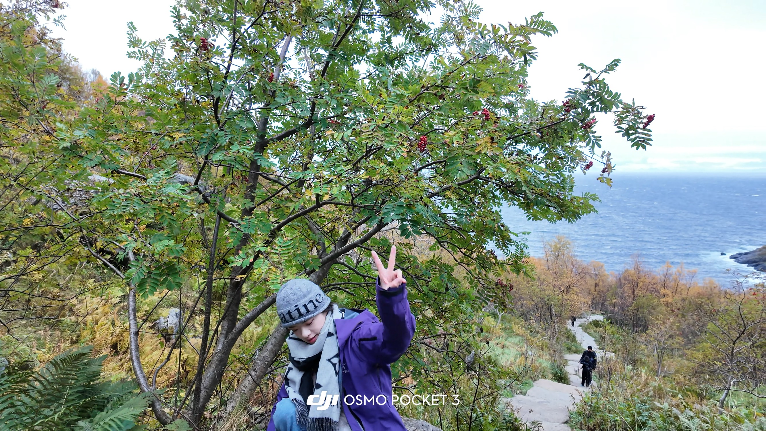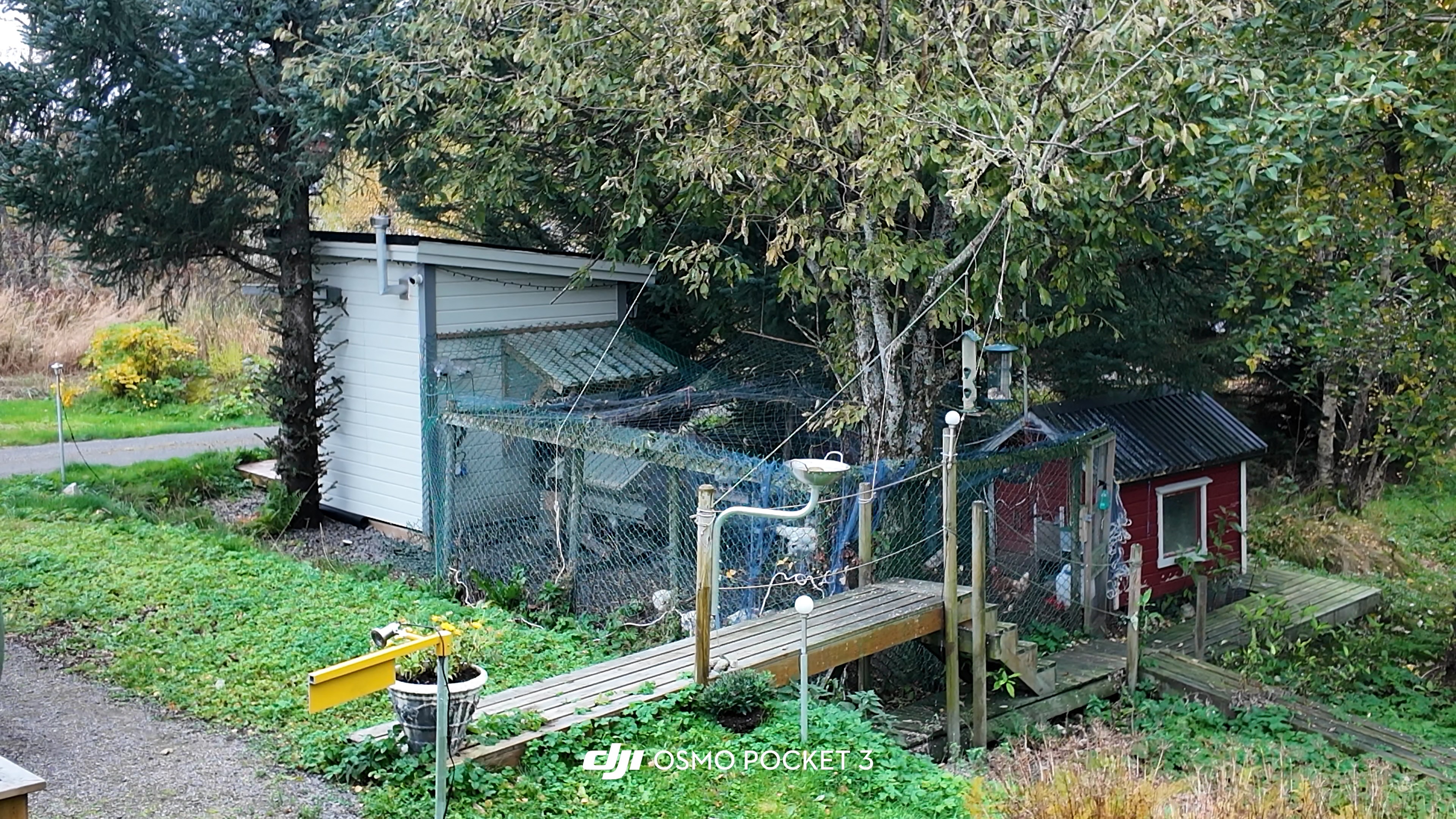 在挪威北部徒步住在一家乡村民宿,院子里有花园和鸡窝,客房和房东是两座联排小屋。