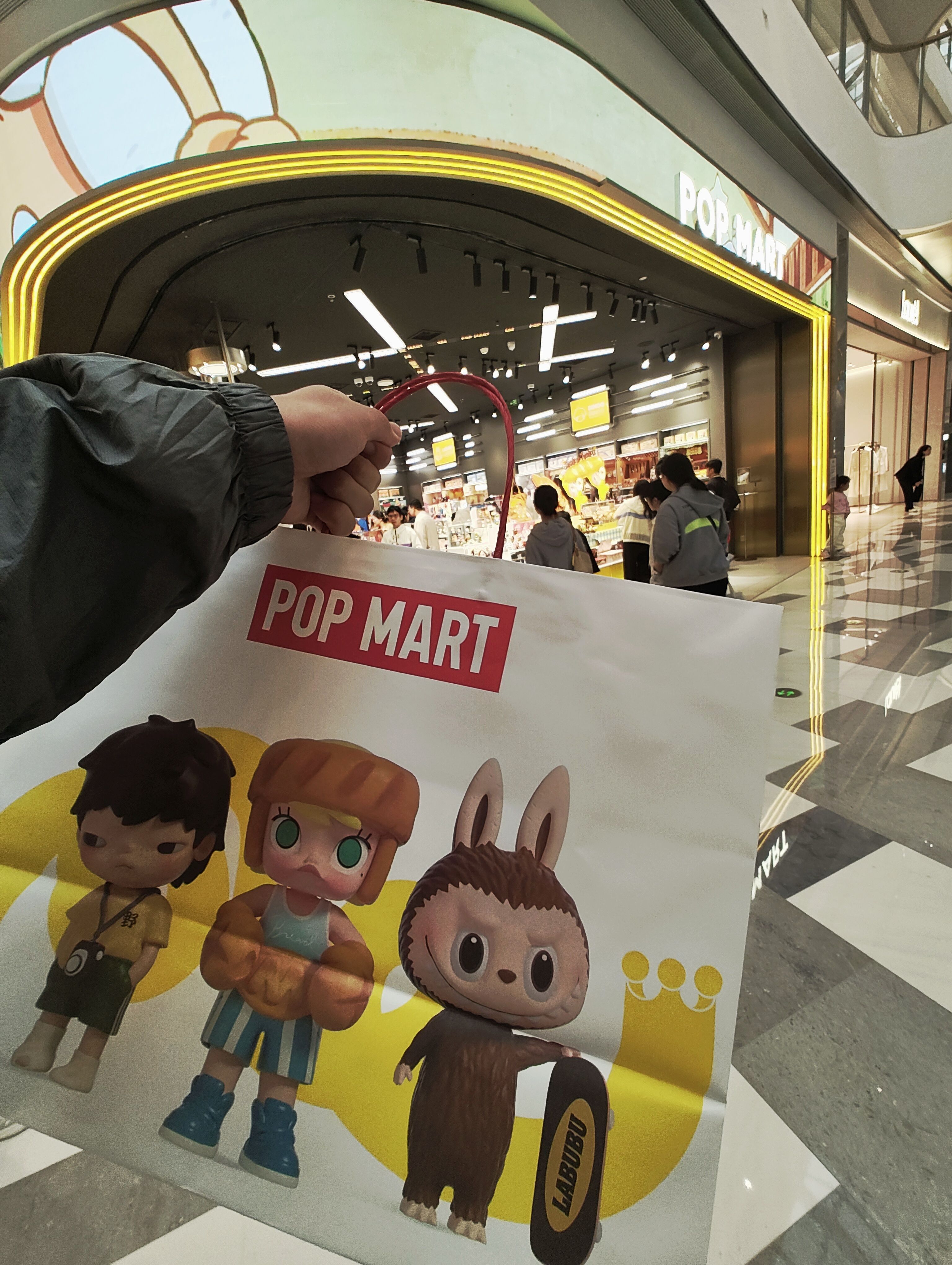拎着一个泡泡玛特最大的袋子骄傲走出门