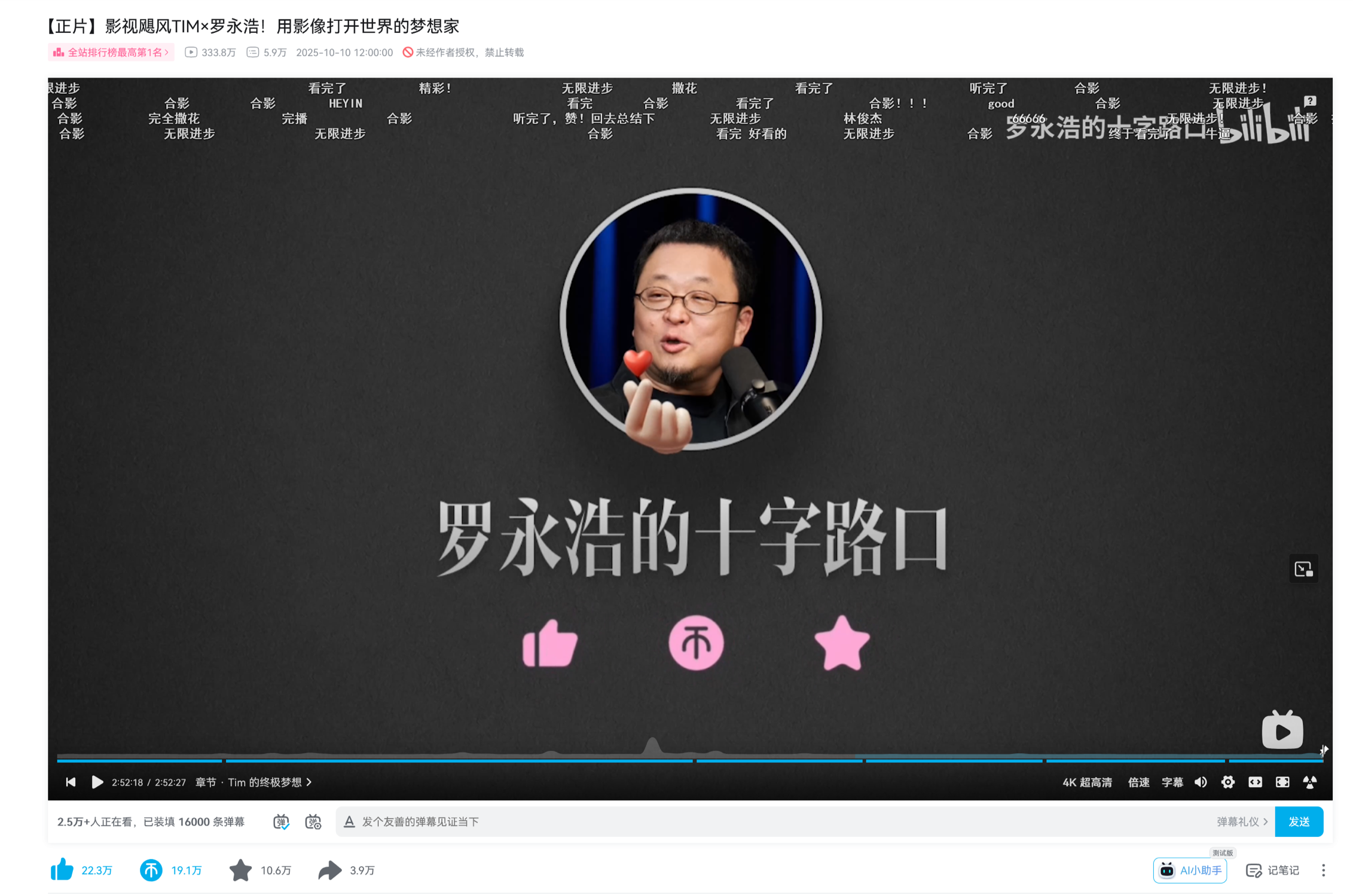 趁着周末,看完 Tim 和罗永浩三小时对谈,没有快进,没有倍速,对于长期欣赏两位作者的观众来说,甚至有点像一场脱口秀,全程干货输出和弹幕热梗很多,丝毫不枯燥。