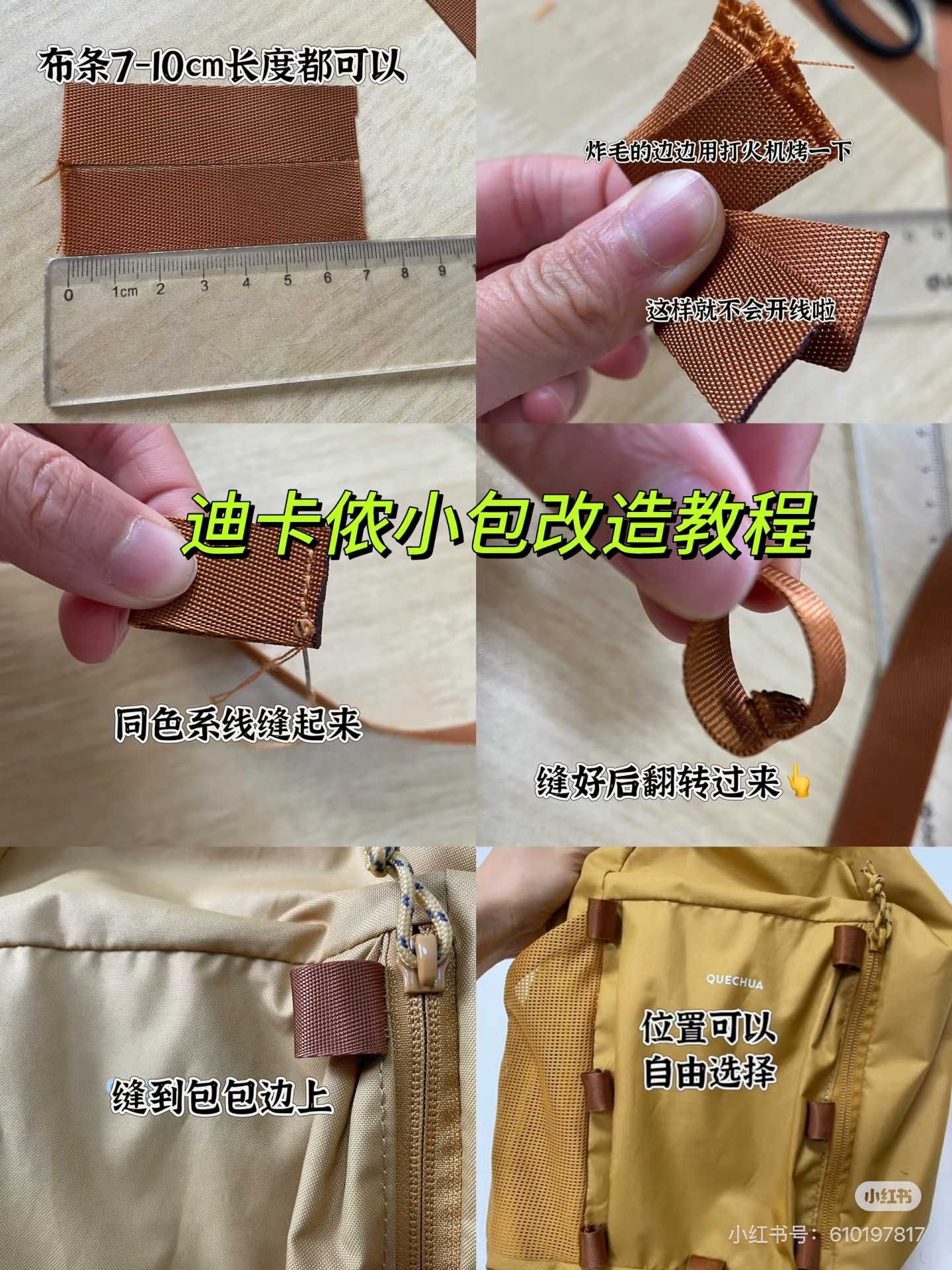 网上看到改造徒步包的教程,但是针线这一步感觉很难,遂去布艺市场找阿姨帮做,但大多数阿姨都以活太小又麻烦而婉拒。功夫不负有心人,逛了一下午的布艺市场,终于找到了一位愿意给我缝制布贴的阿姨!阿姨专业又细致,布贴都是拆开线后嵌到包内的,两端还都跑了两道线加固,比我自己缝的好多了。