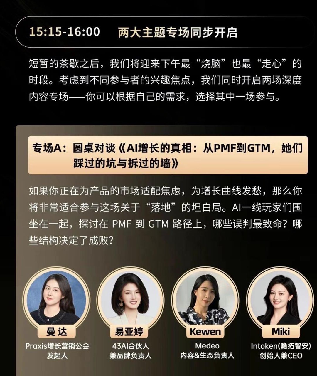 圆桌把增长讲回了现场:PMF到GTM最致命的不是不努力,是误判结构;细节与情绪的敏感,在内容时代会长成竞争优势。真实做自己,反而更容易吸引精准用户与信任。