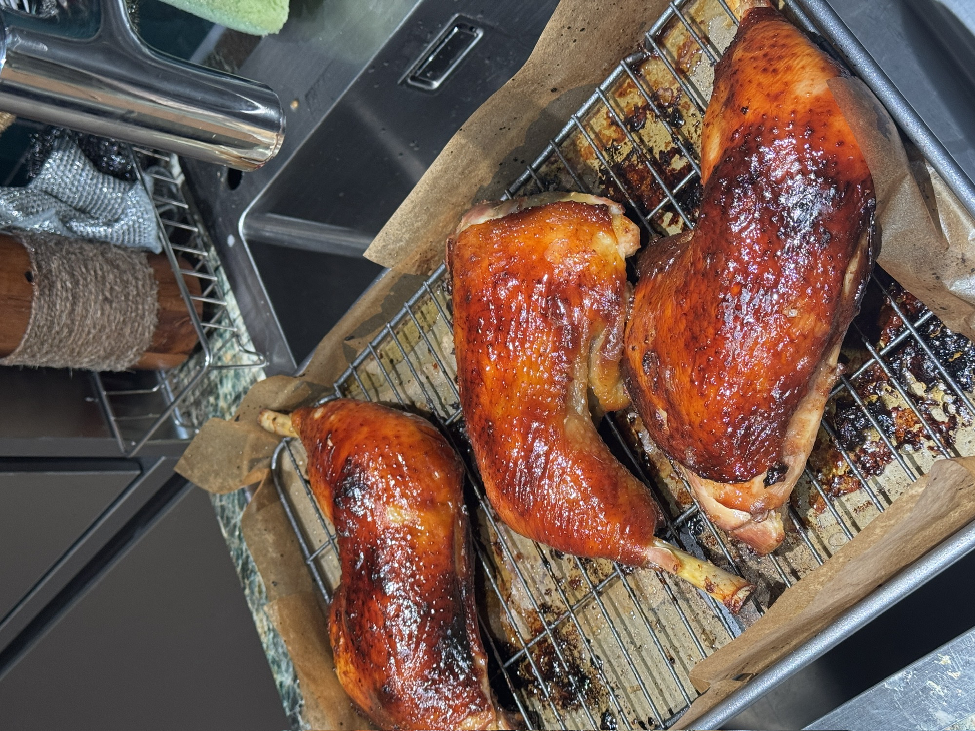 盐麴冷藏腌24h后洗掉表面盐麴,继续进冷藏,风干18h,200度烤30min,皮脆肉嫩,肉质🈚️科技感。完美烤鸡。感谢米麴神。