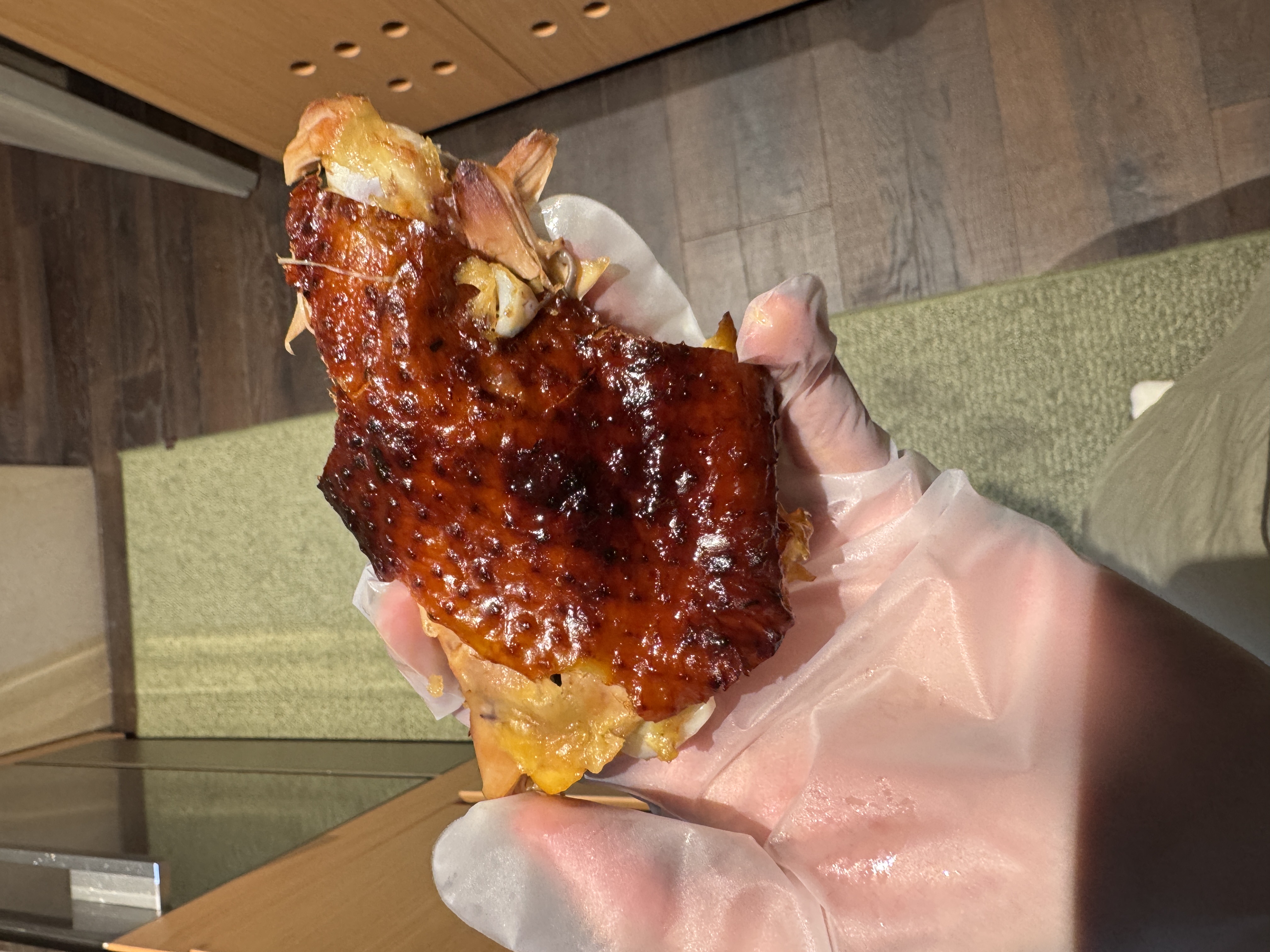 鸡冷了,皮还是脆的