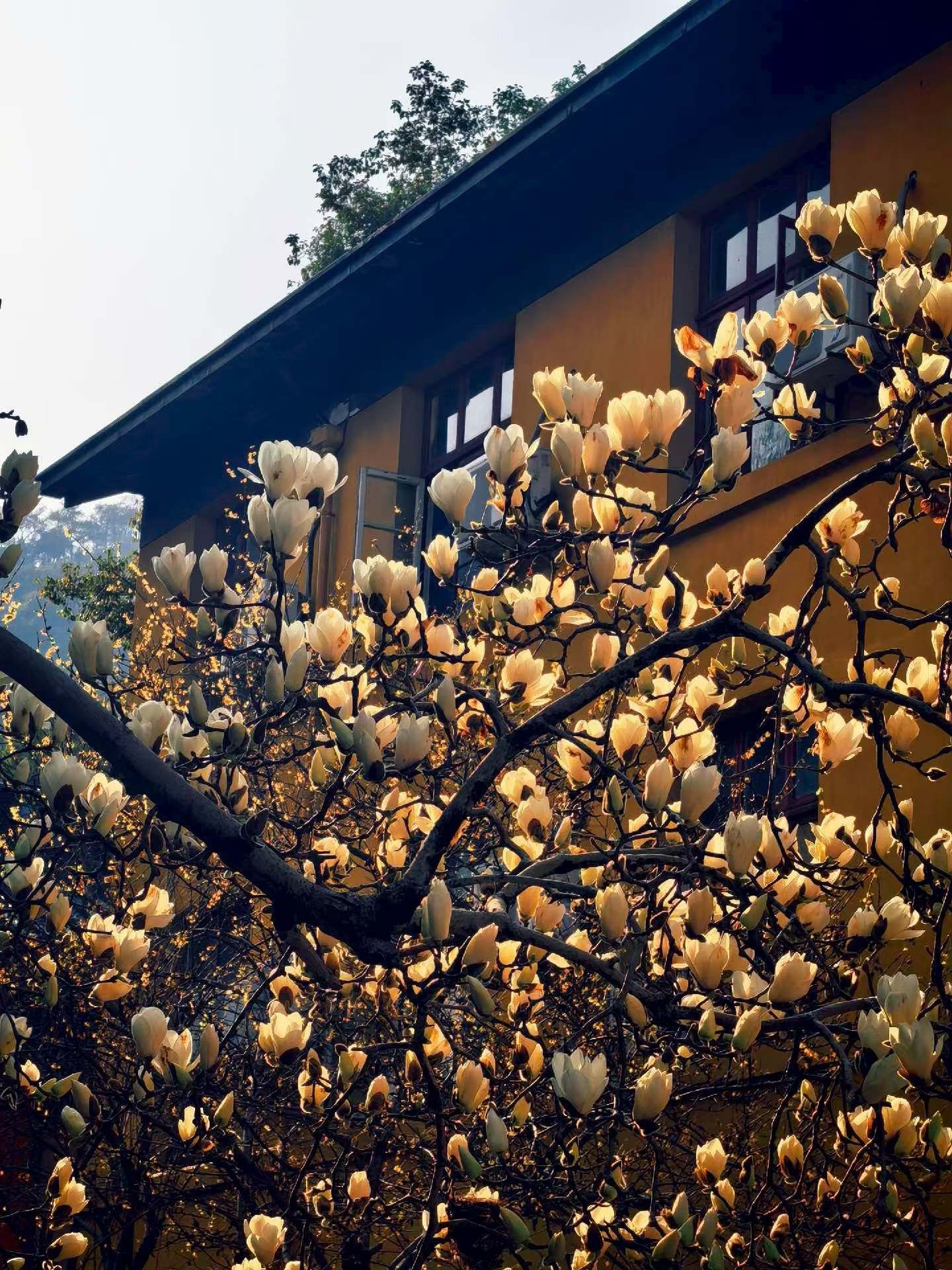 东风吹过玉兰花,