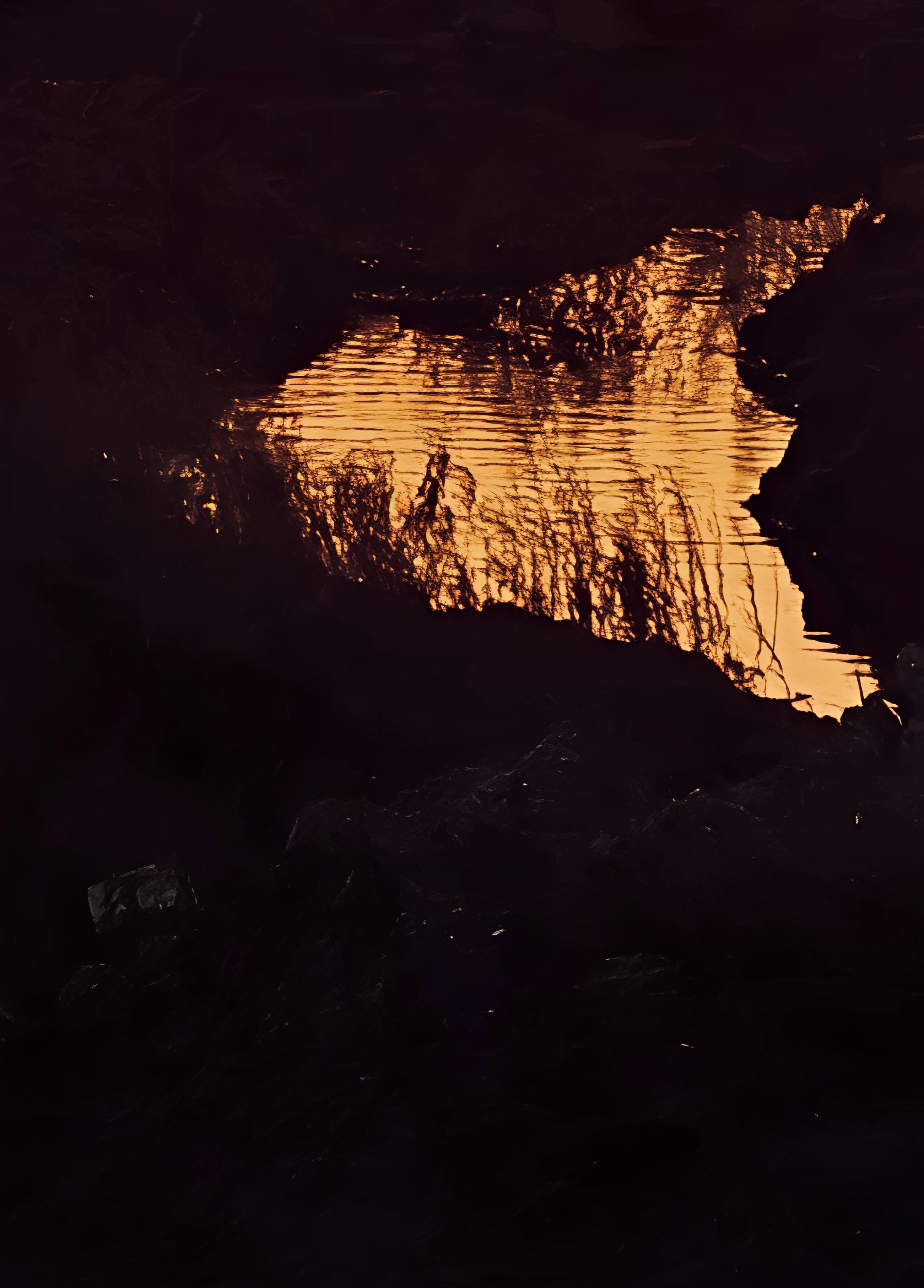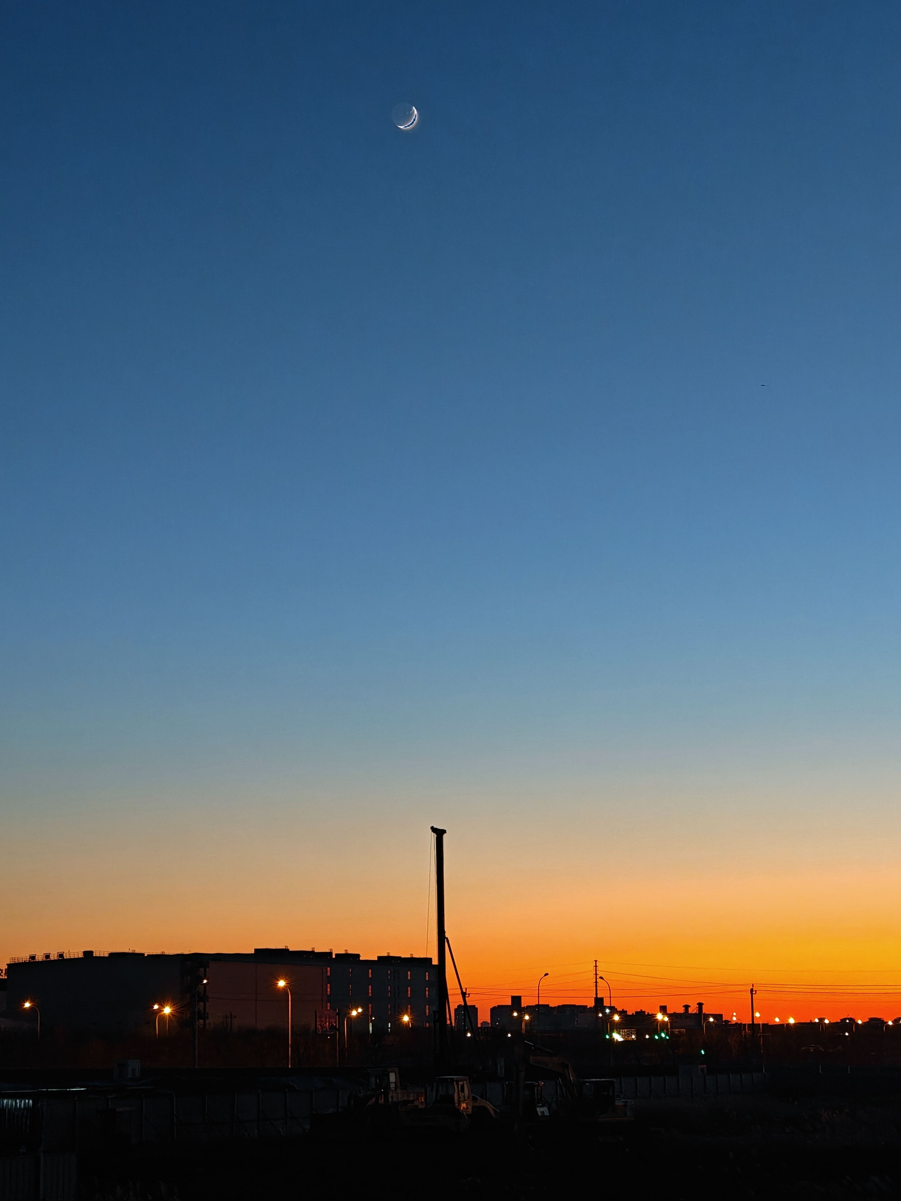 冬日雨后的黄昏,蛾眉月在彩色天空里澄净极了。转瞬飞来两只野鸭,落入水洼里,荡起涟漪后,瞬间进入夜色,然后发现水里一弯“金色月亮”。