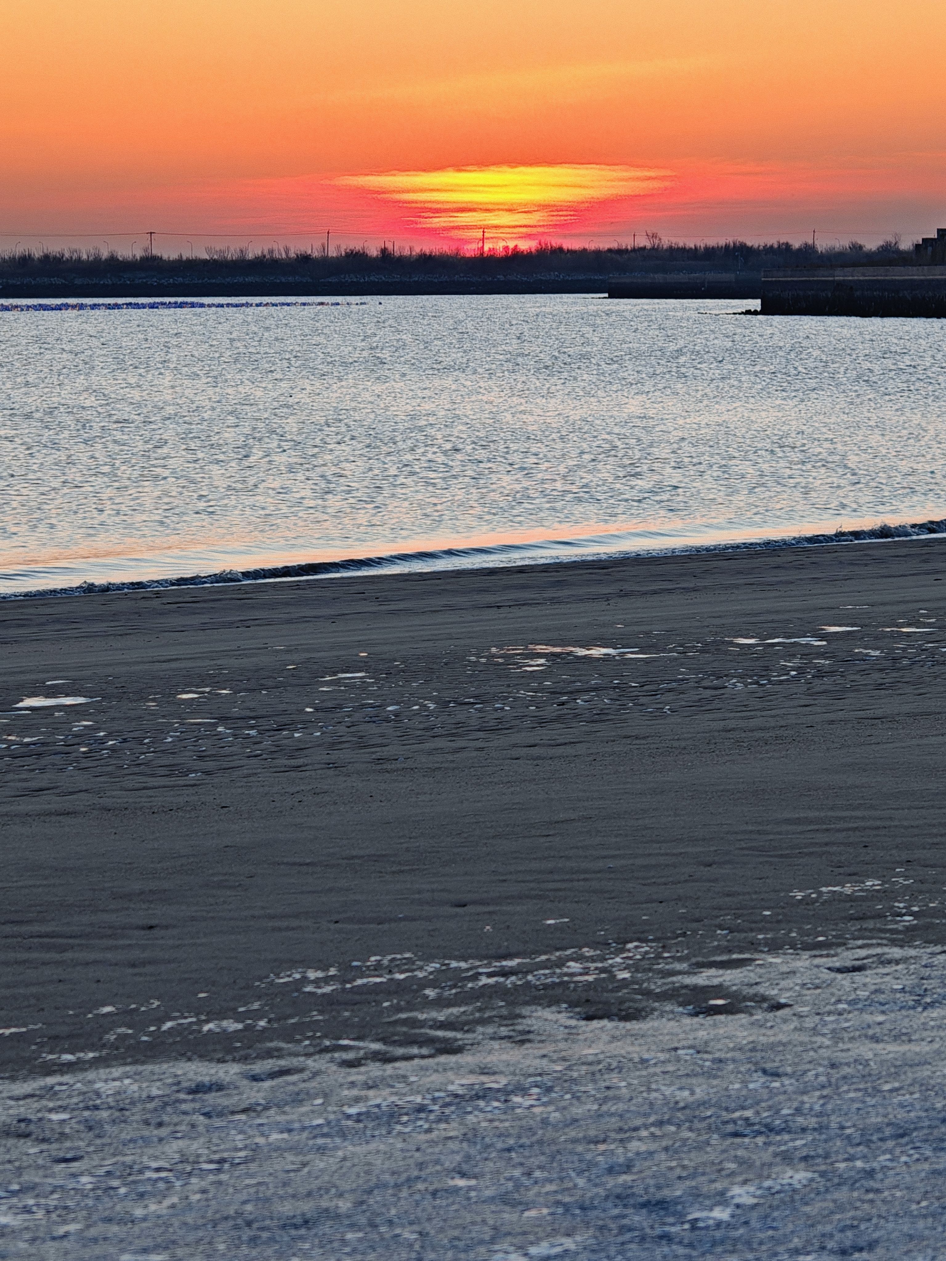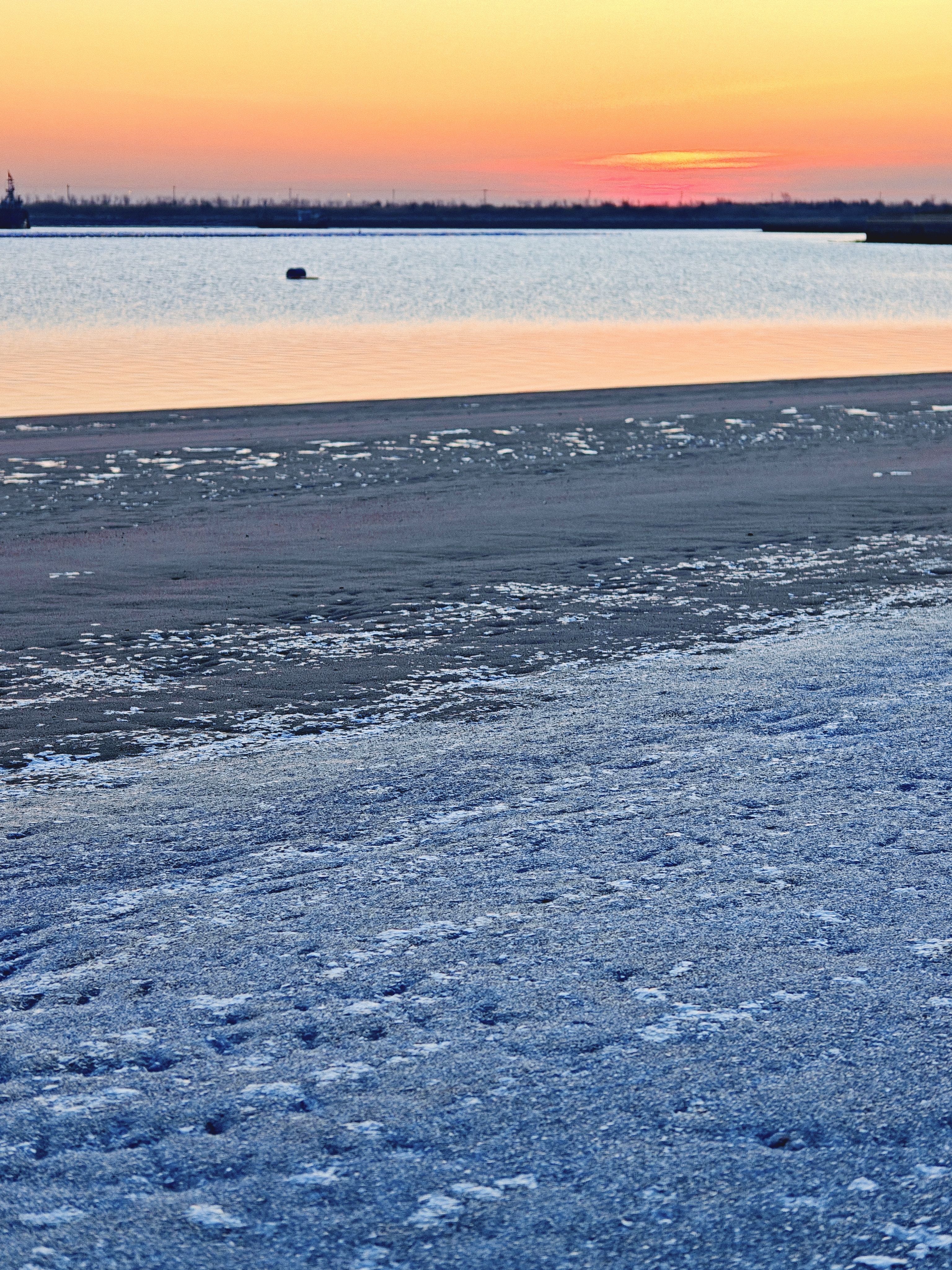 今天海边刚好退潮,脚踩着蓝色的冰,坚硬沙滩,看日出时分渐冷暖色调。太阳升起后,当块被晒暖的石头迎接新的一年。朋友们,去吧,天地间无阻无碍。