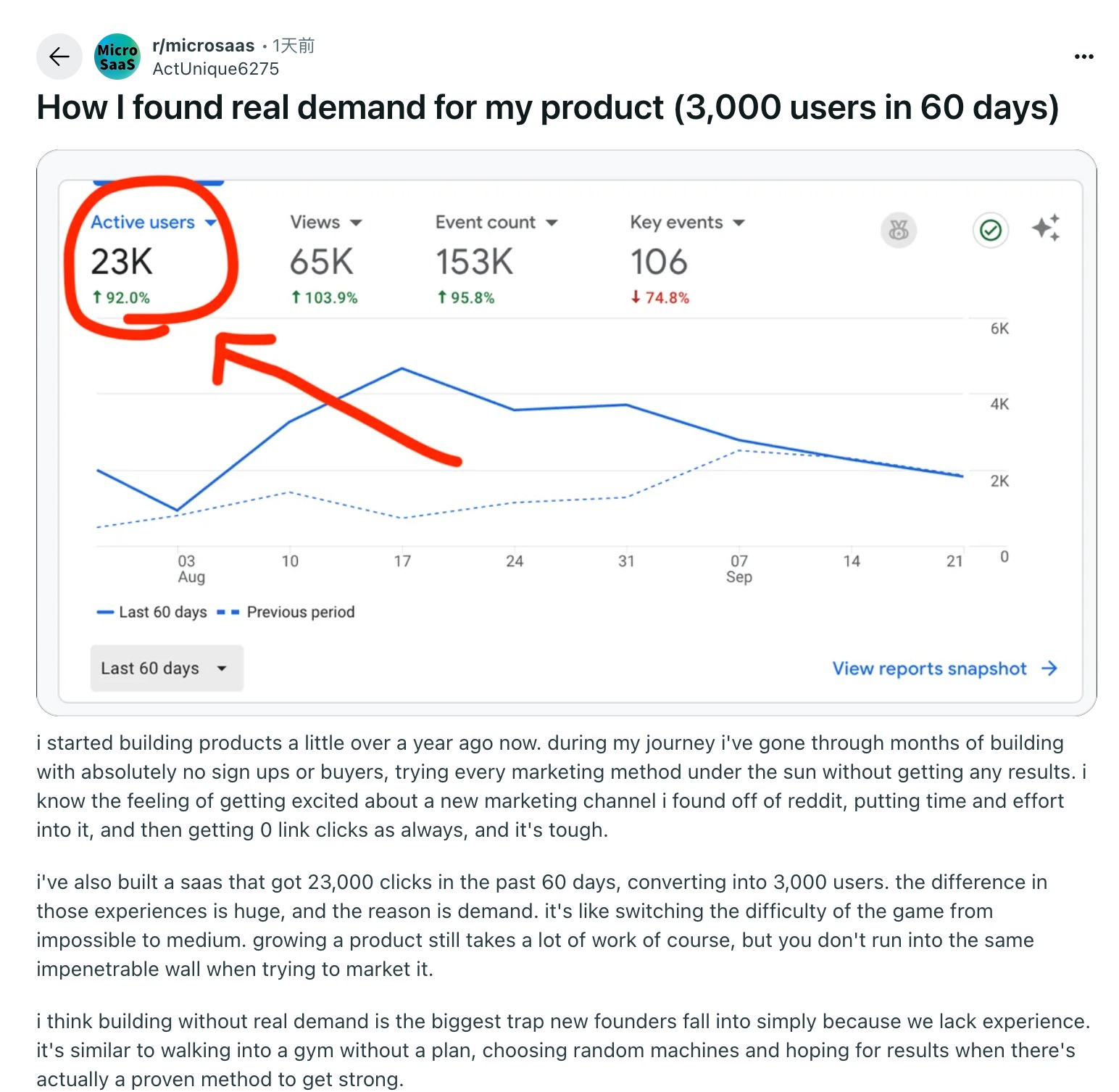 在这段旅程中,我经历过闭门造车好几个月,结果一个注册用户、一个付费客户都没有的绝望。我试过你在Reddit上能找到的所有营销方法,结果链接点击量永远是0。