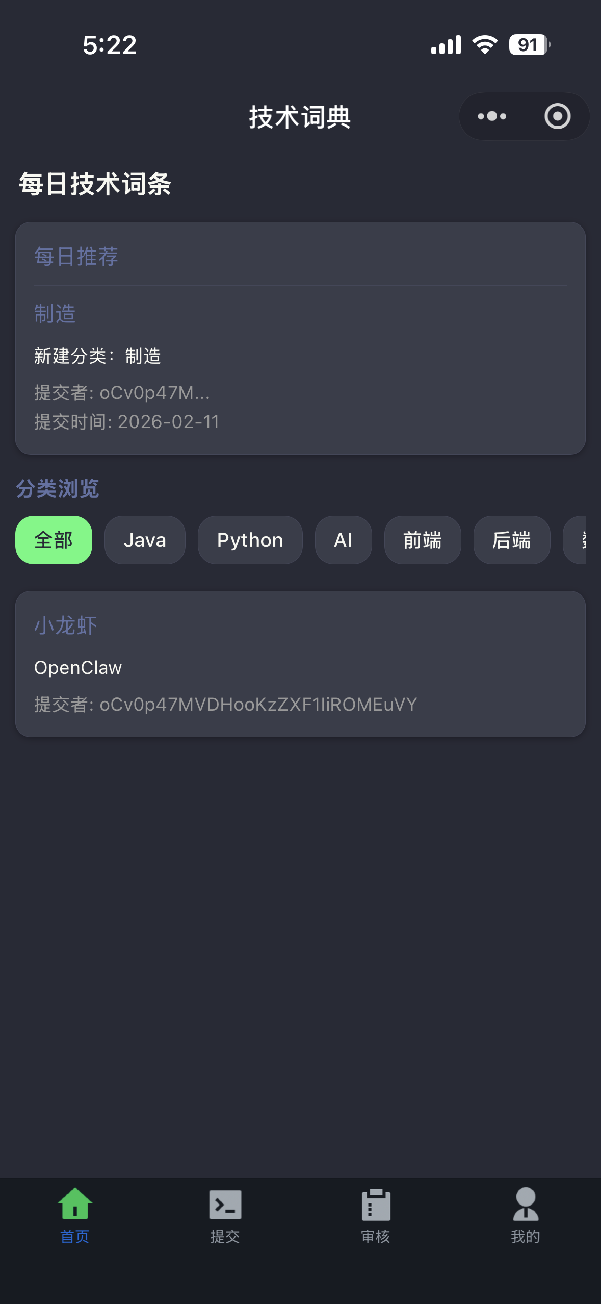我做了一个技术词典小程序,各行各业都可以提交和技术相关的名词和释义。