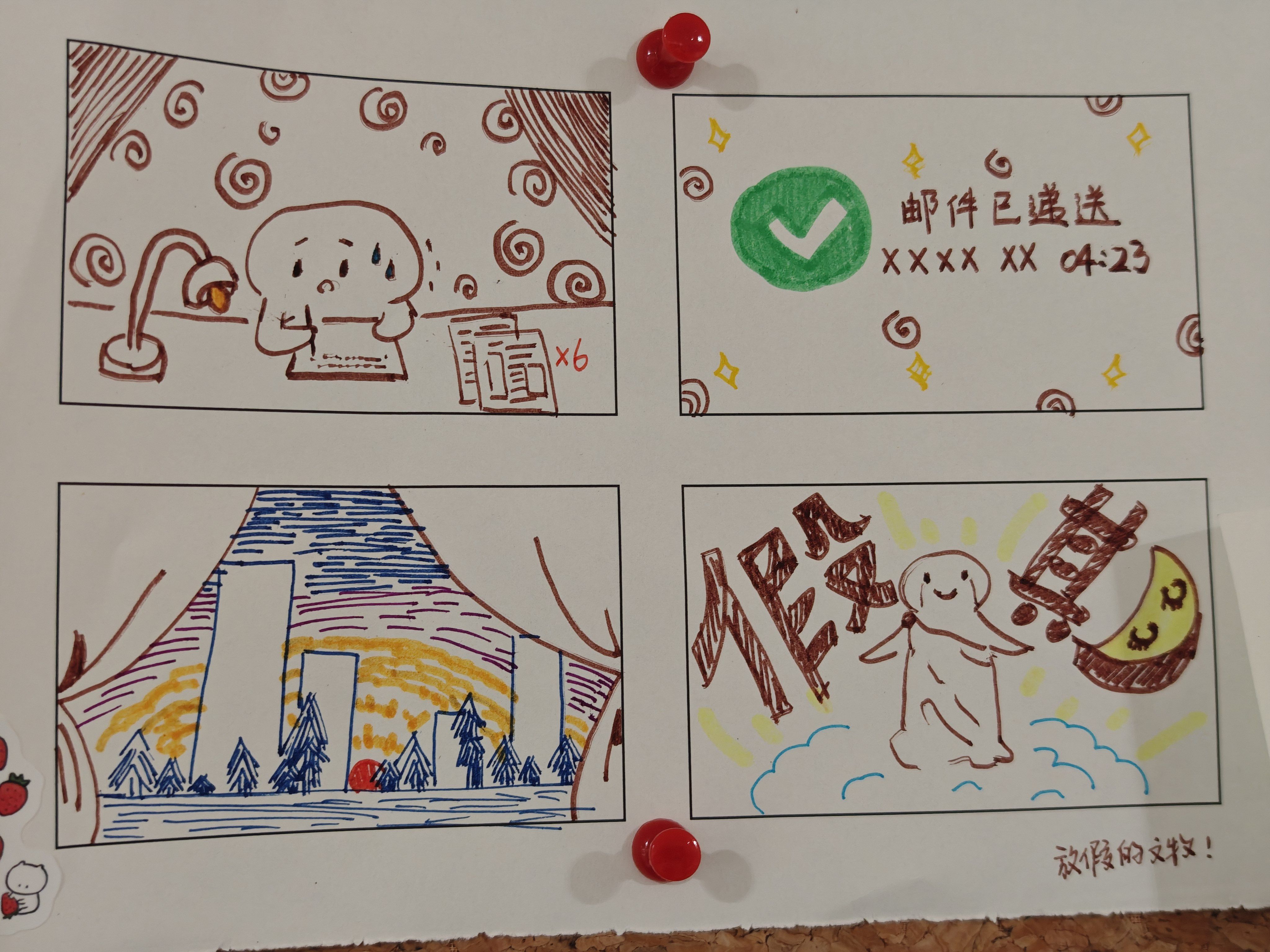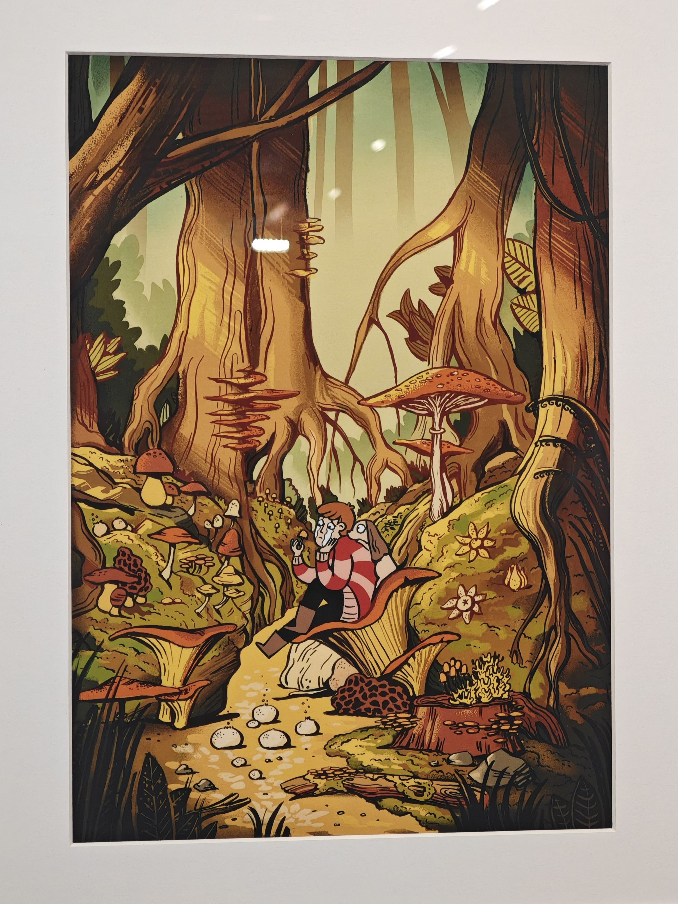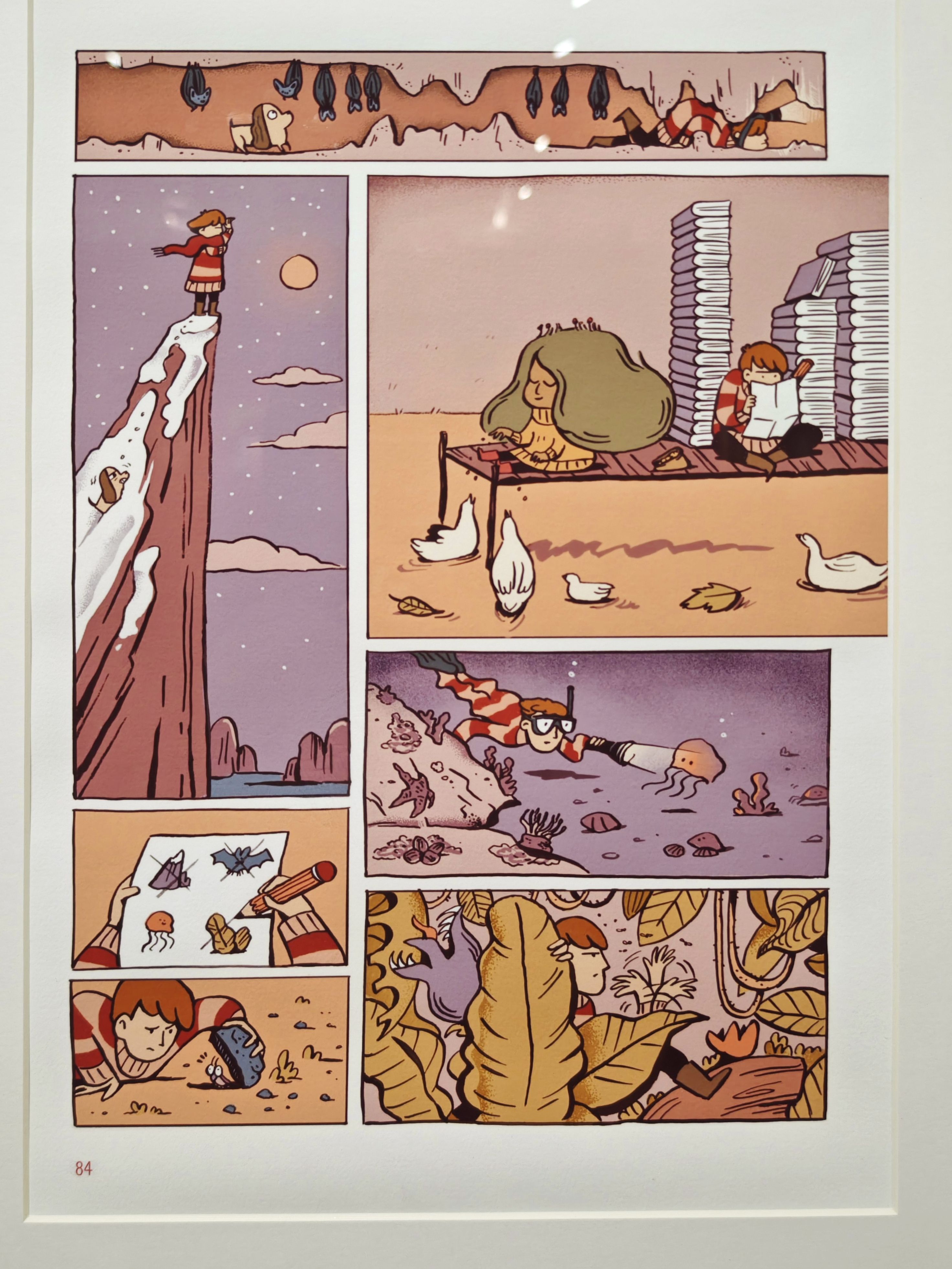 其中勇气、历史与反思、梦境、科幻这几个part个人比较感兴趣,p4-p6贴了勇气part一组自己最喜欢的画风,这个作品讲述的是因为妹妹消失,她的姐姐踏上一段找寻妹妹的奇幻冒险之旅。听了讲解才知道这个所谓的“消失”,其实是社会性的消失,即指的妹妹因为抑郁症而从人际交往中消失,因此有了漫画最开始被蒙住的被子这个意象。这个作品触及了抑郁症给家庭其他成员所带来的困境,照顾者本身也会经历考验和挣扎。