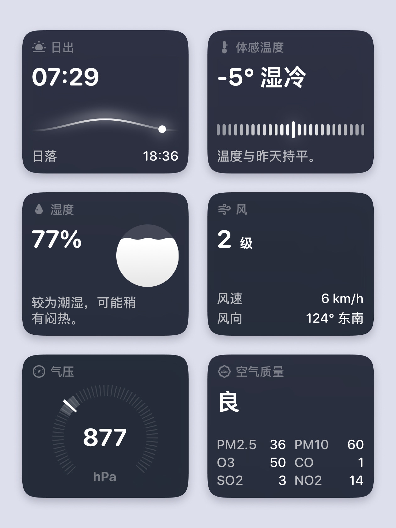 ▫️更丰富的单项天气数据卡片
