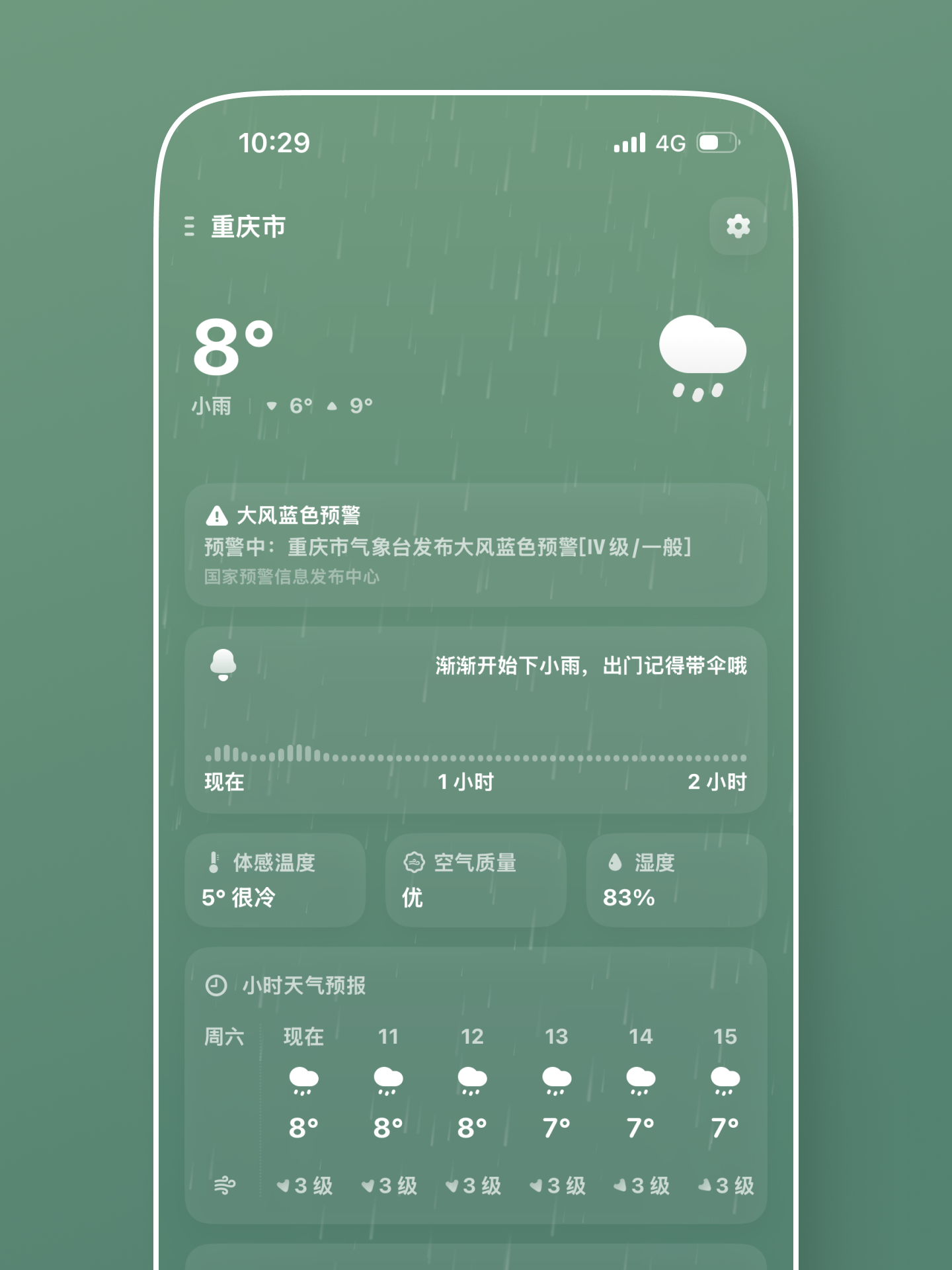 • 天气推送,支持每日摘要、降雨及预警