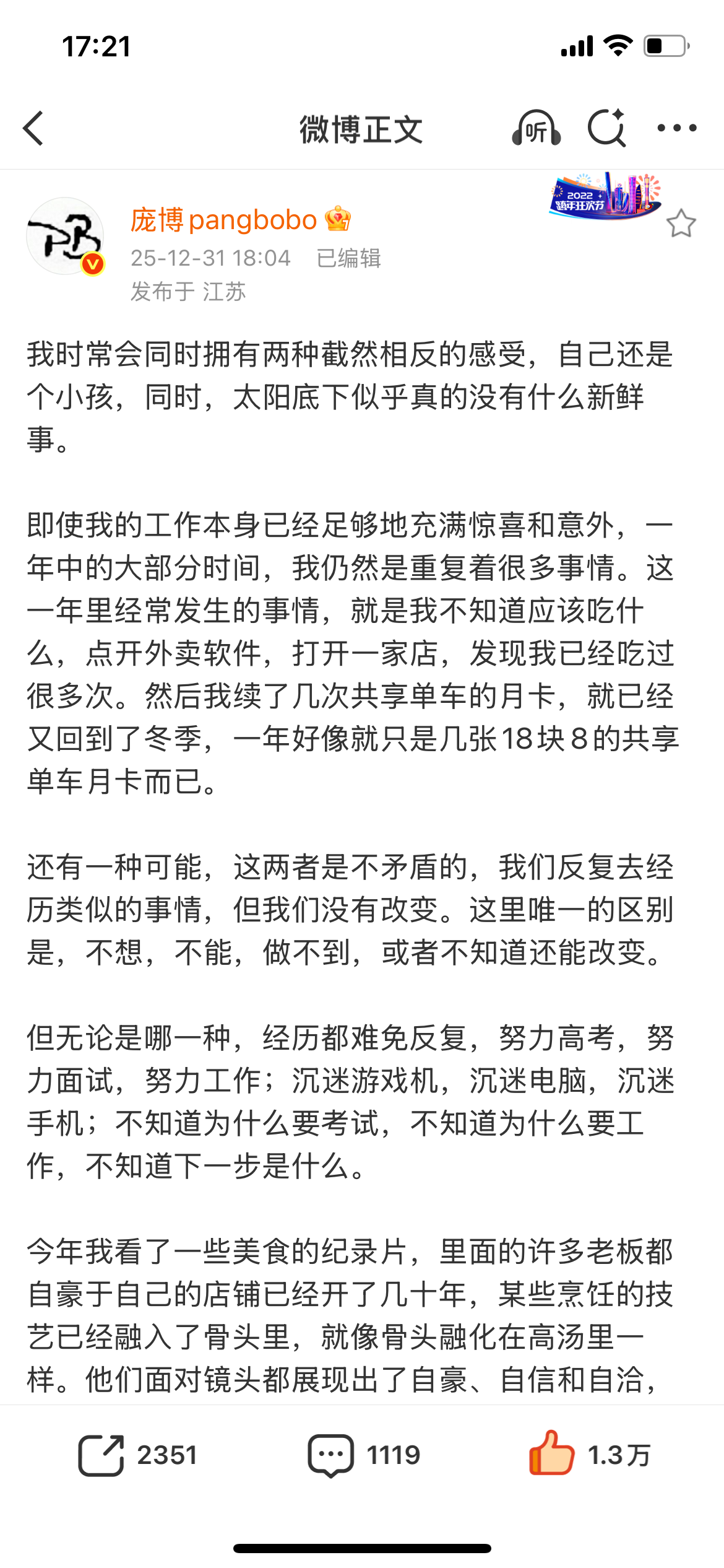 谢谢你这一年学会了不为发生过的事、说出去的话而后悔焦虑。