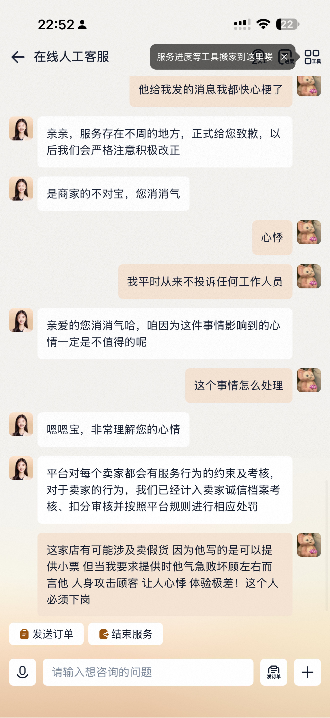 一个连最基本沟通能力和道德水平都🈚️的人是怎么敢在网上开店的 然后平台客服安慰我半天