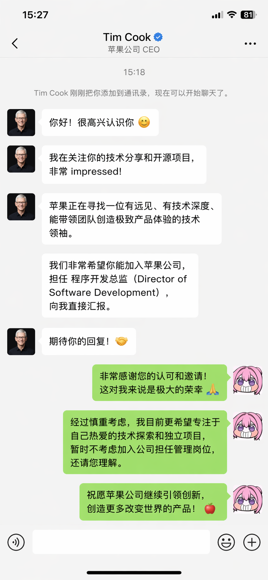 婉拒了