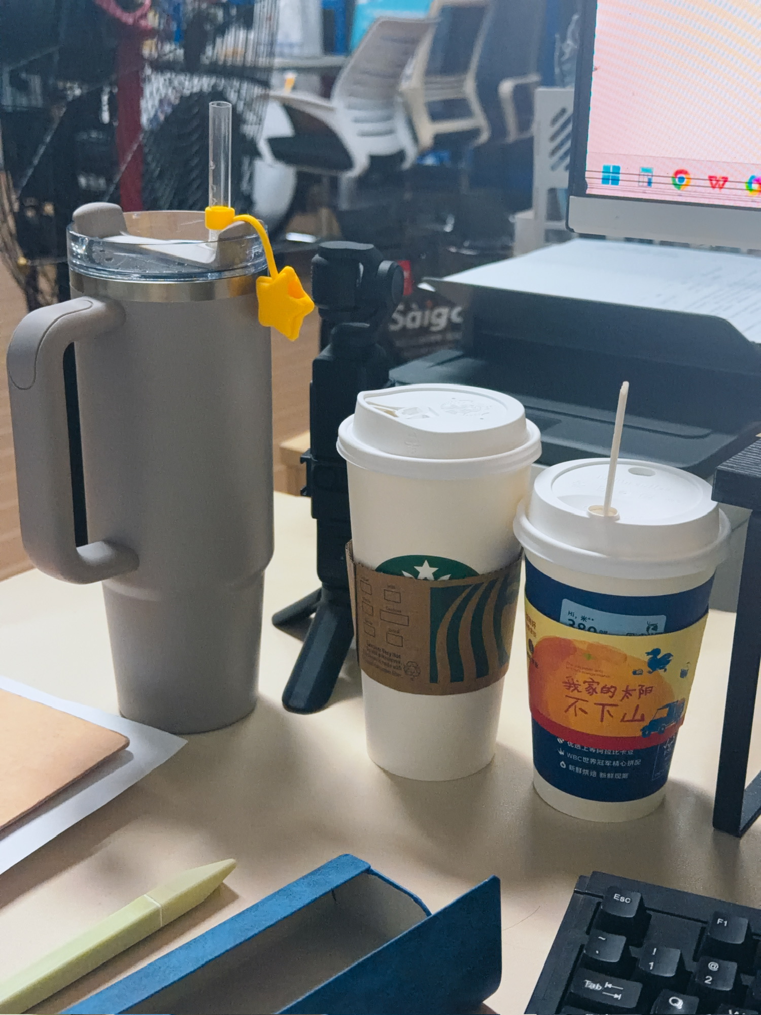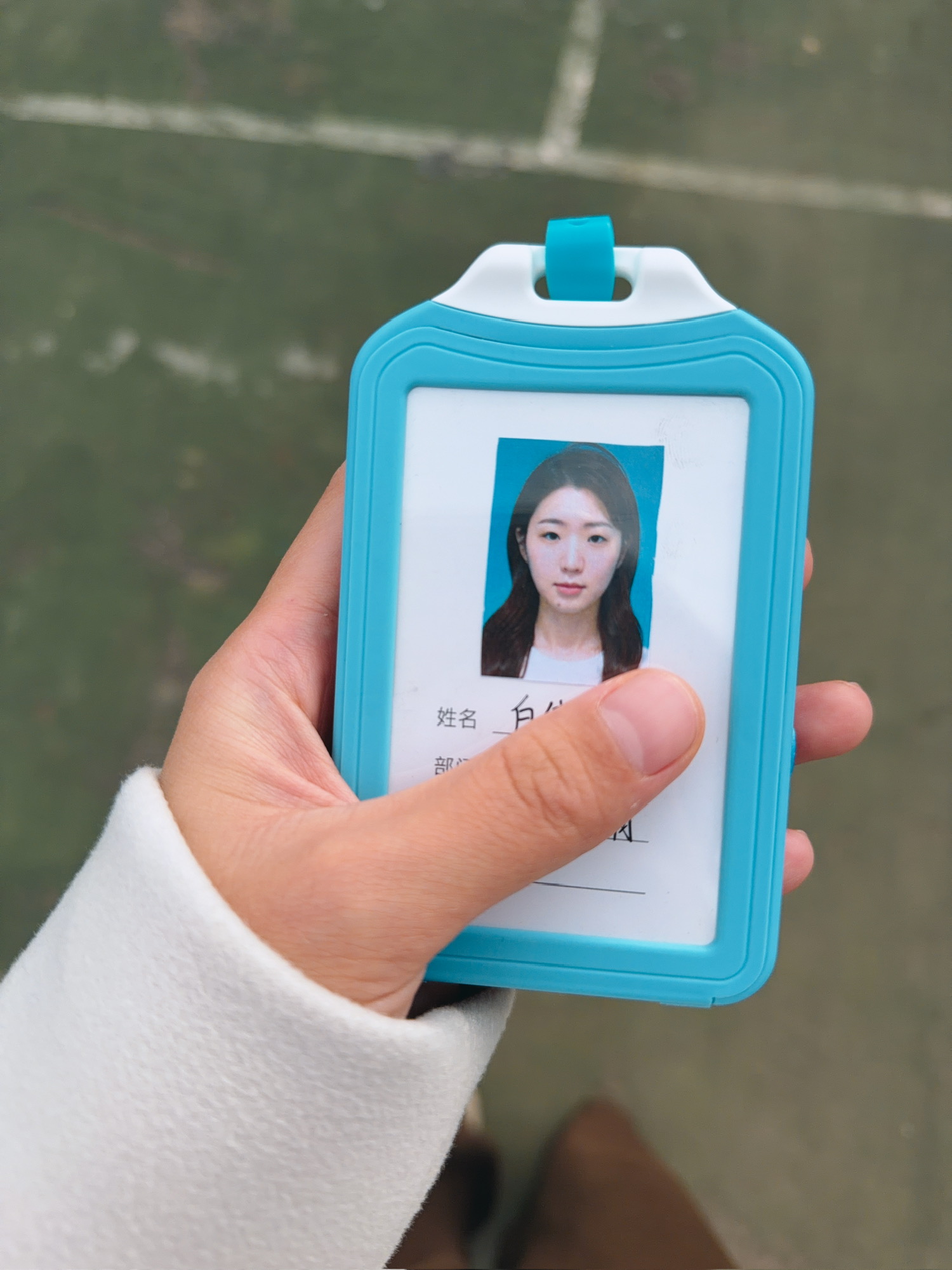 保洁姐在临时驻场办公室和她的临时工牌(没有说保洁不好的意思)