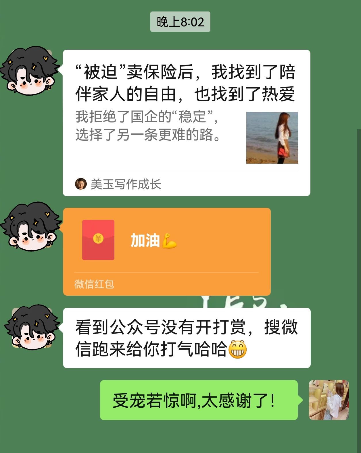 专门给我打气,真的超级开心!