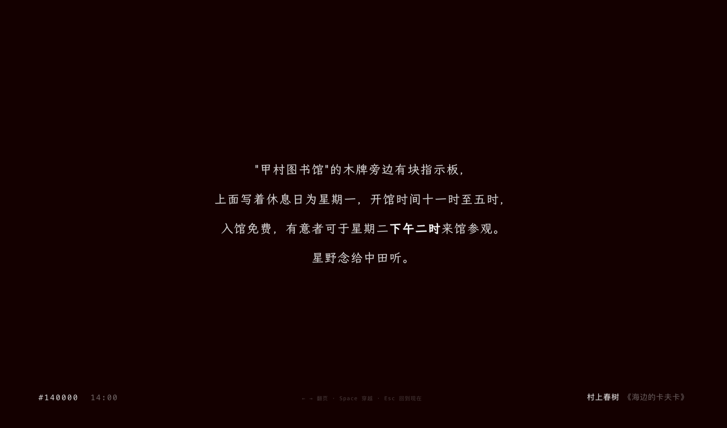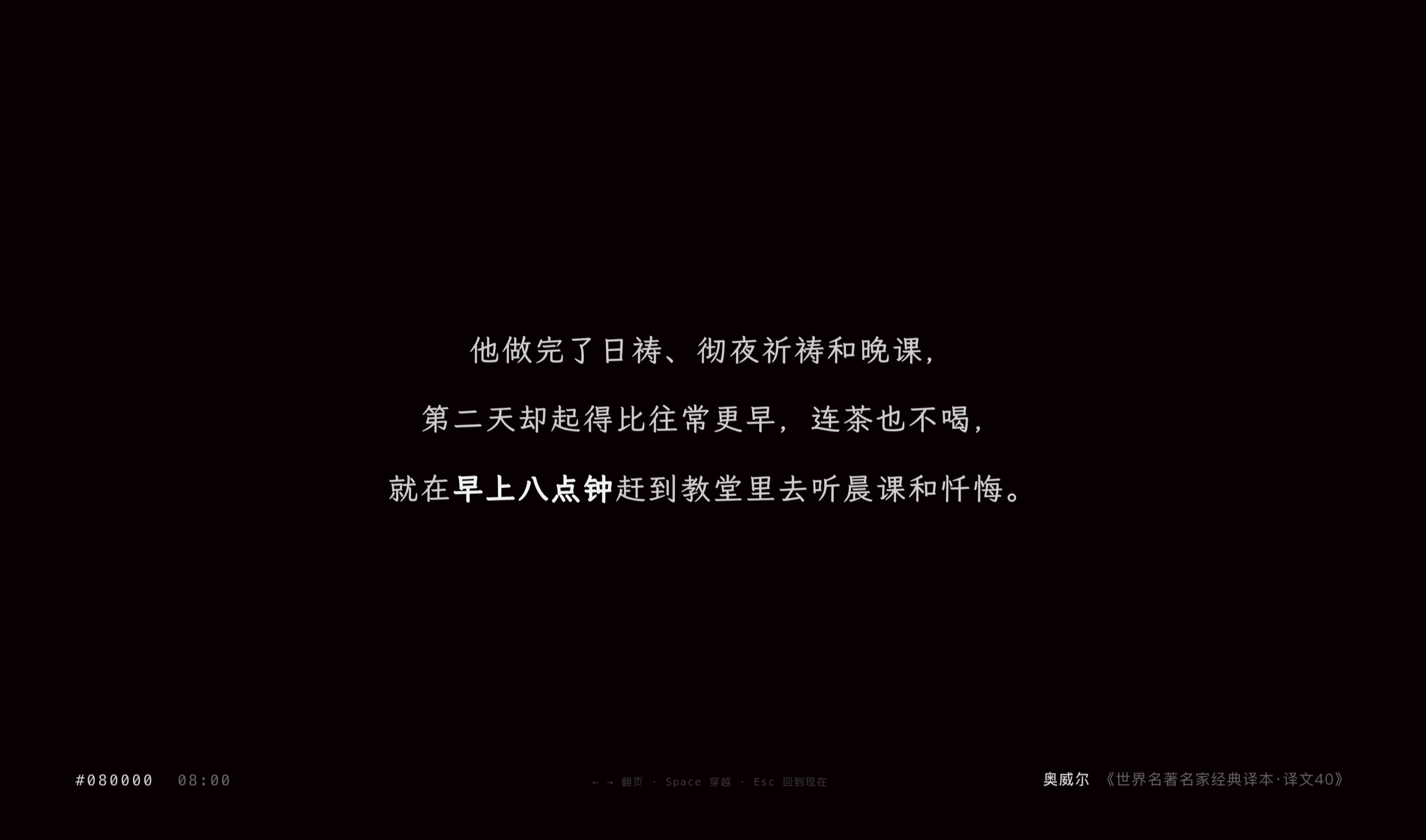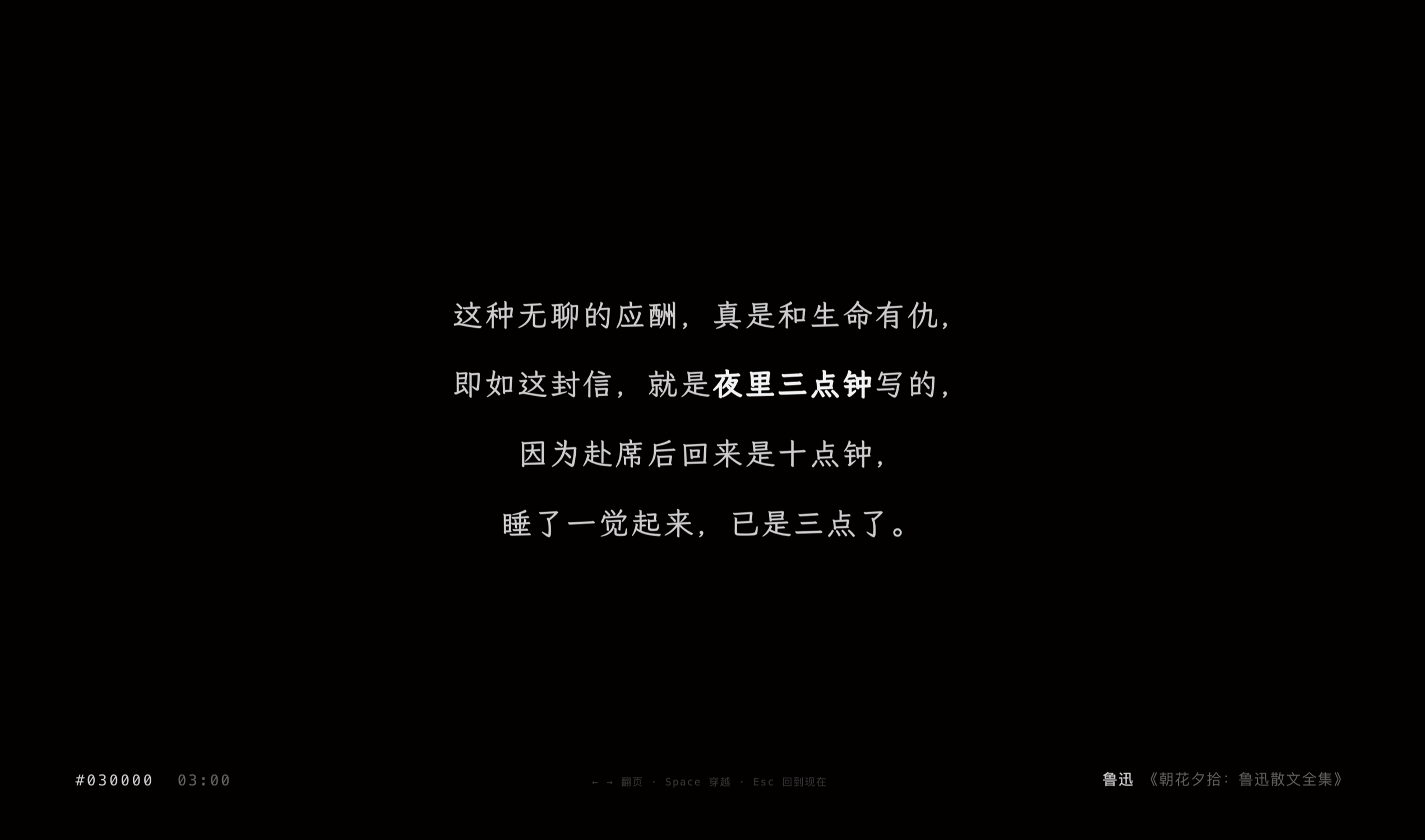 四年前看到一个外国项目,把文学作品里的时间描写做成了时钟——下午三点,屏幕上出现的是某本小说里写的"It was three o'clock"。