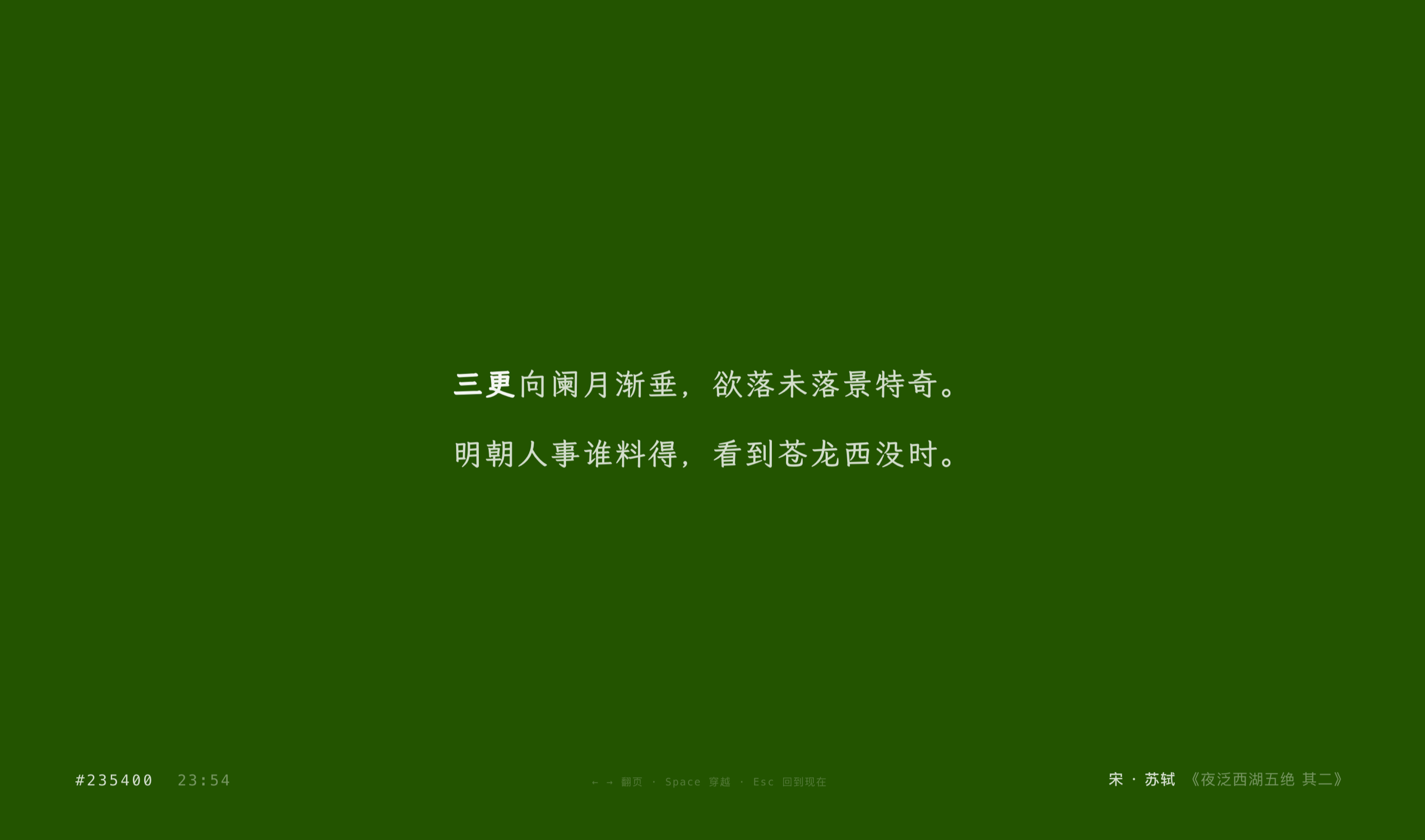 功能很简单,每次打开浏览器新标签页,会看到一句和当前时刻对应的中文文学引文。比如: