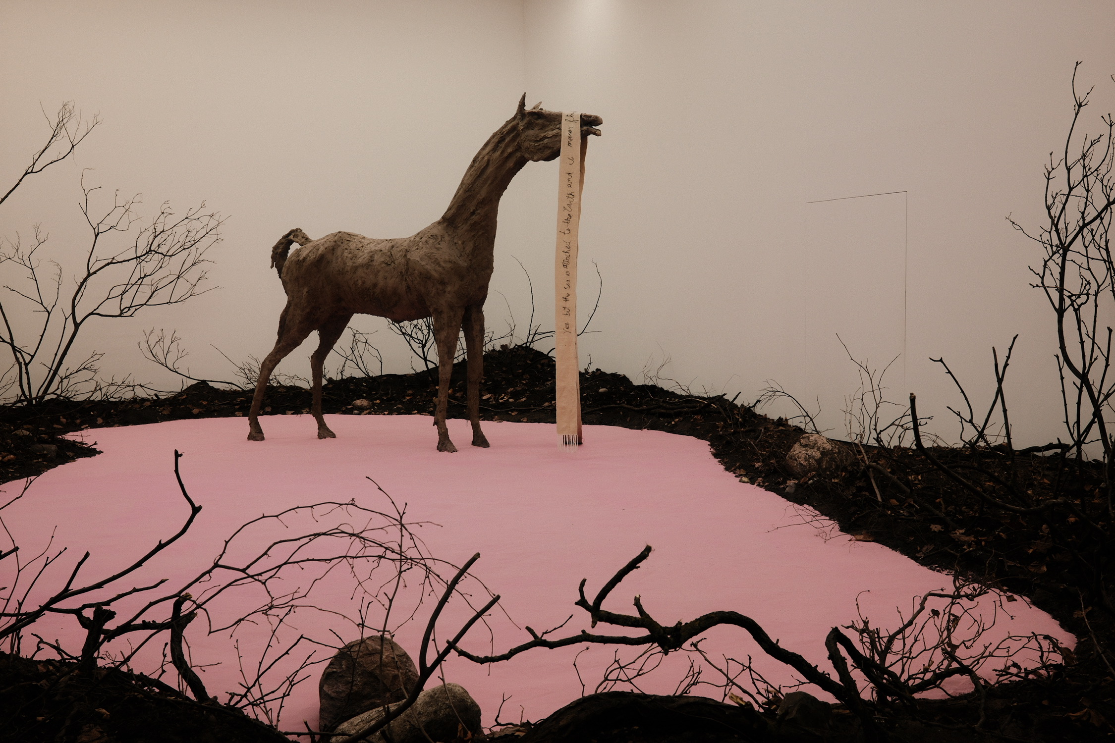 很幸运赶上捷克艺术家Klára Hosnedlová的展览末班车。巨型亚麻与大麻纤维编织的悬挂装置,搭配玻璃、柏林本土土壤与精妙的声音设计,直接把人拽进沉浸式的艺术漩涡里。女声低喃、若有似无的节奏、带着不安感的音阶,在空旷的旧车站里回荡,更妙的是,装置中的几组音响设备来自柏林一些已经歇业的techno club。