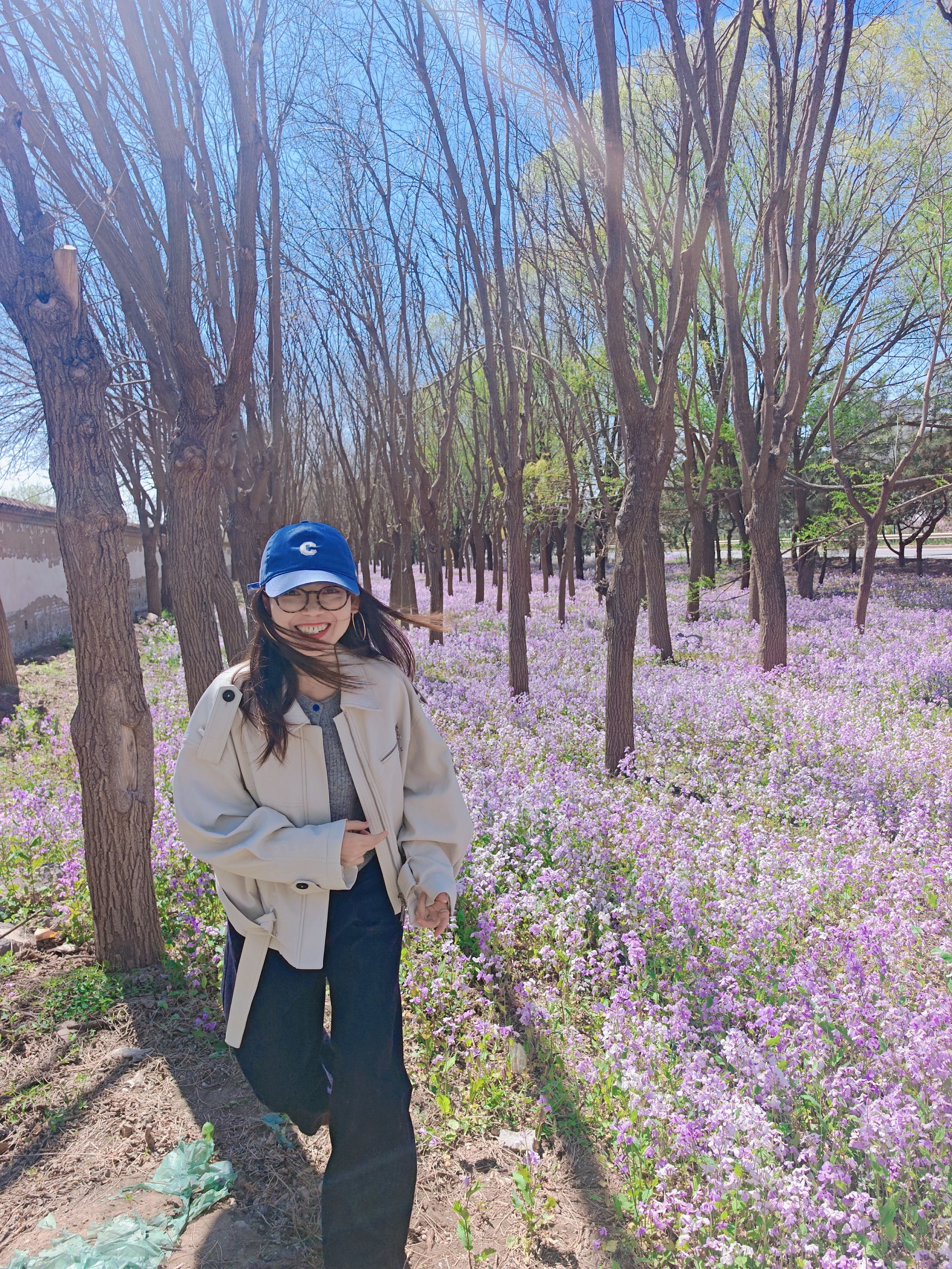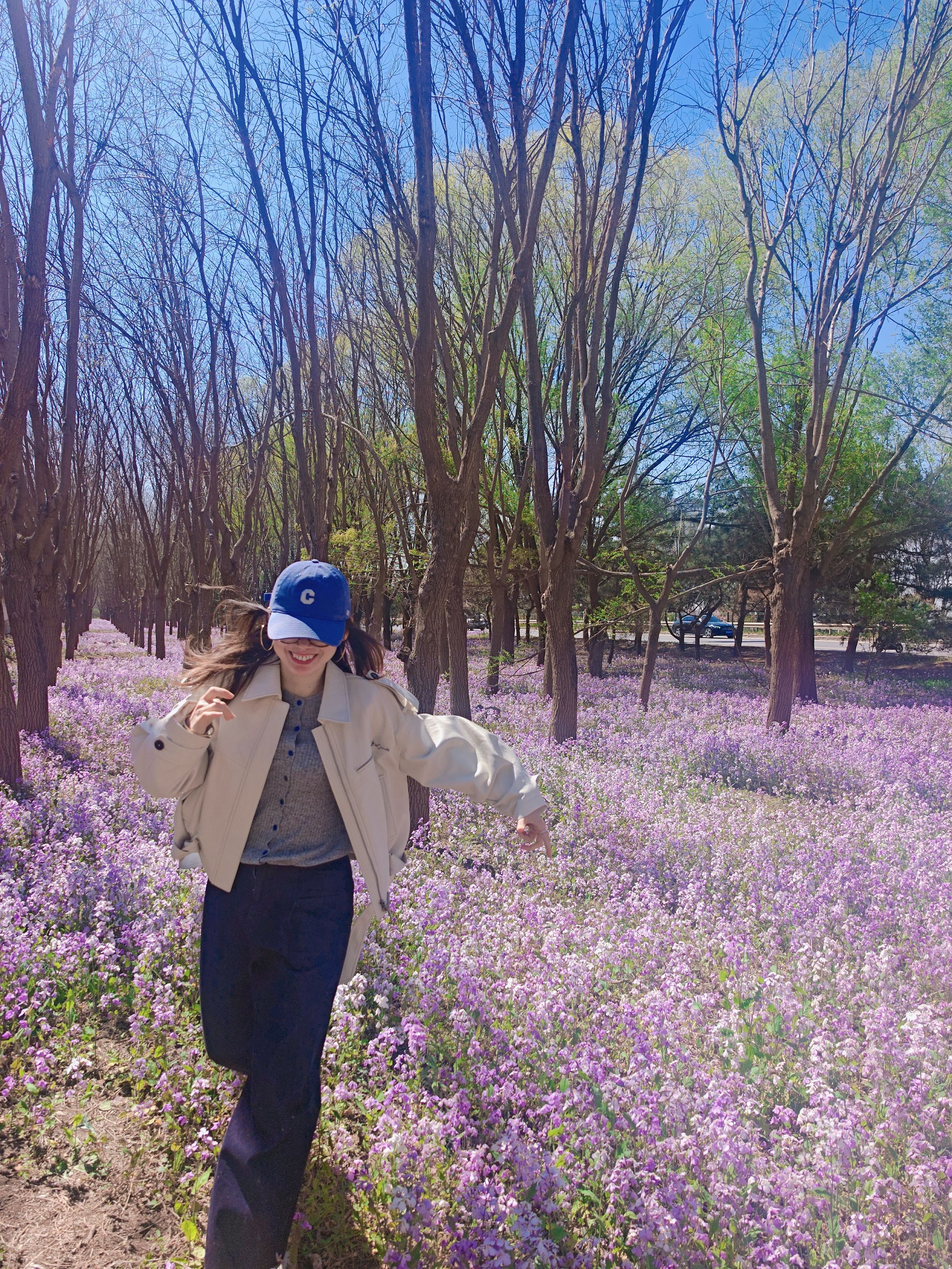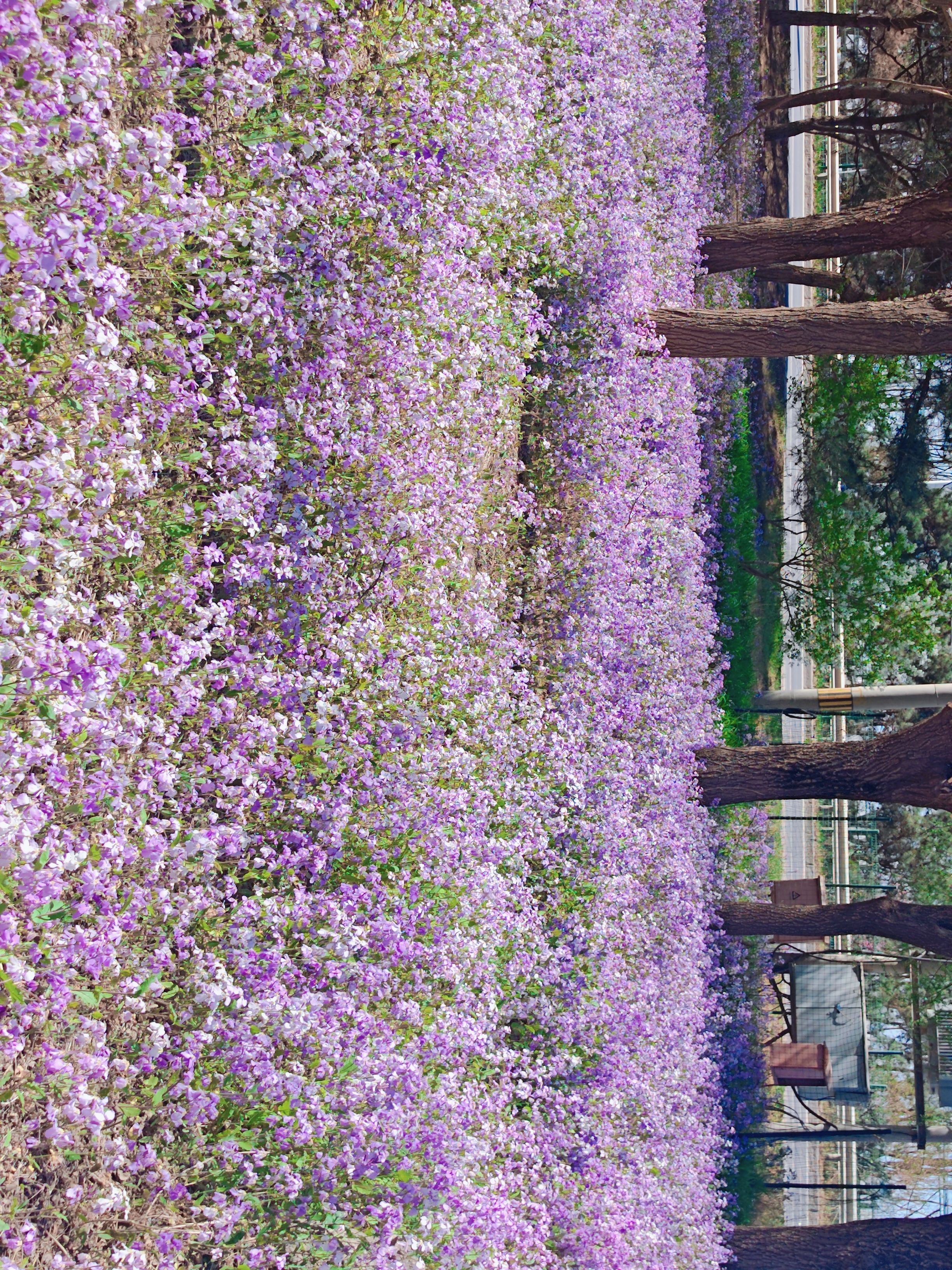 北京路边到处都是海棠和二月兰