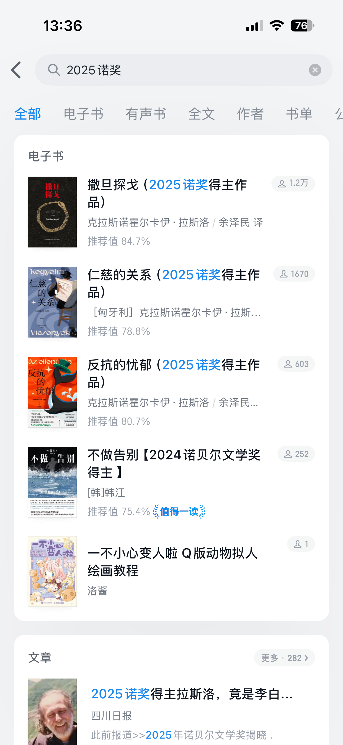 搜诺奖作品,本以为是书名更新及时性不足,后发现问题是关键字分词机制。