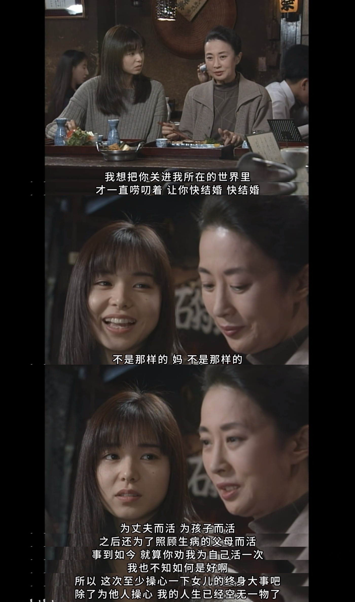 32 年前的日剧,就能这样深刻地描绘身为妻子和母亲的困境啊。即便我既不是妈妈也不是女儿,也能深深共情这段台词,以至于落泪。