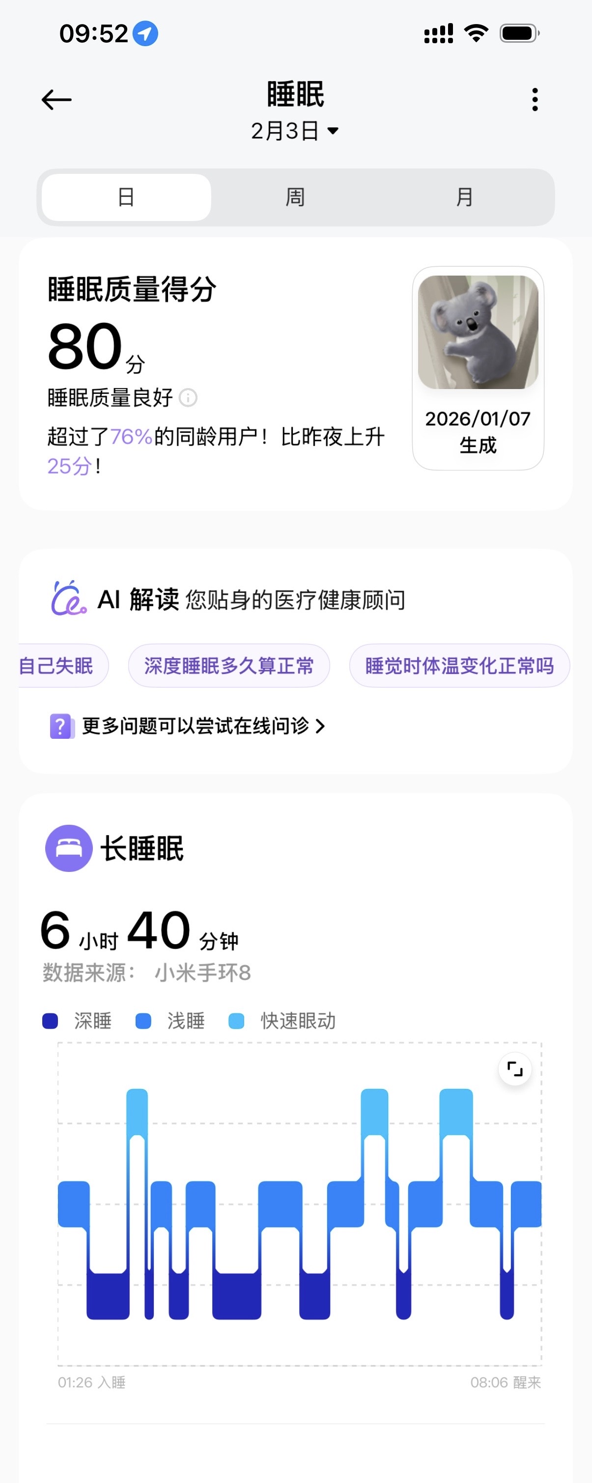 80分睡眠,感觉如果不需要上班的话,睡到十一二点会更舒服😌