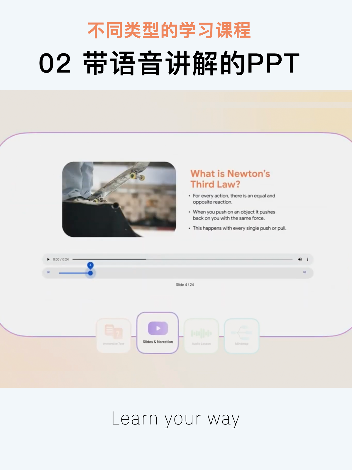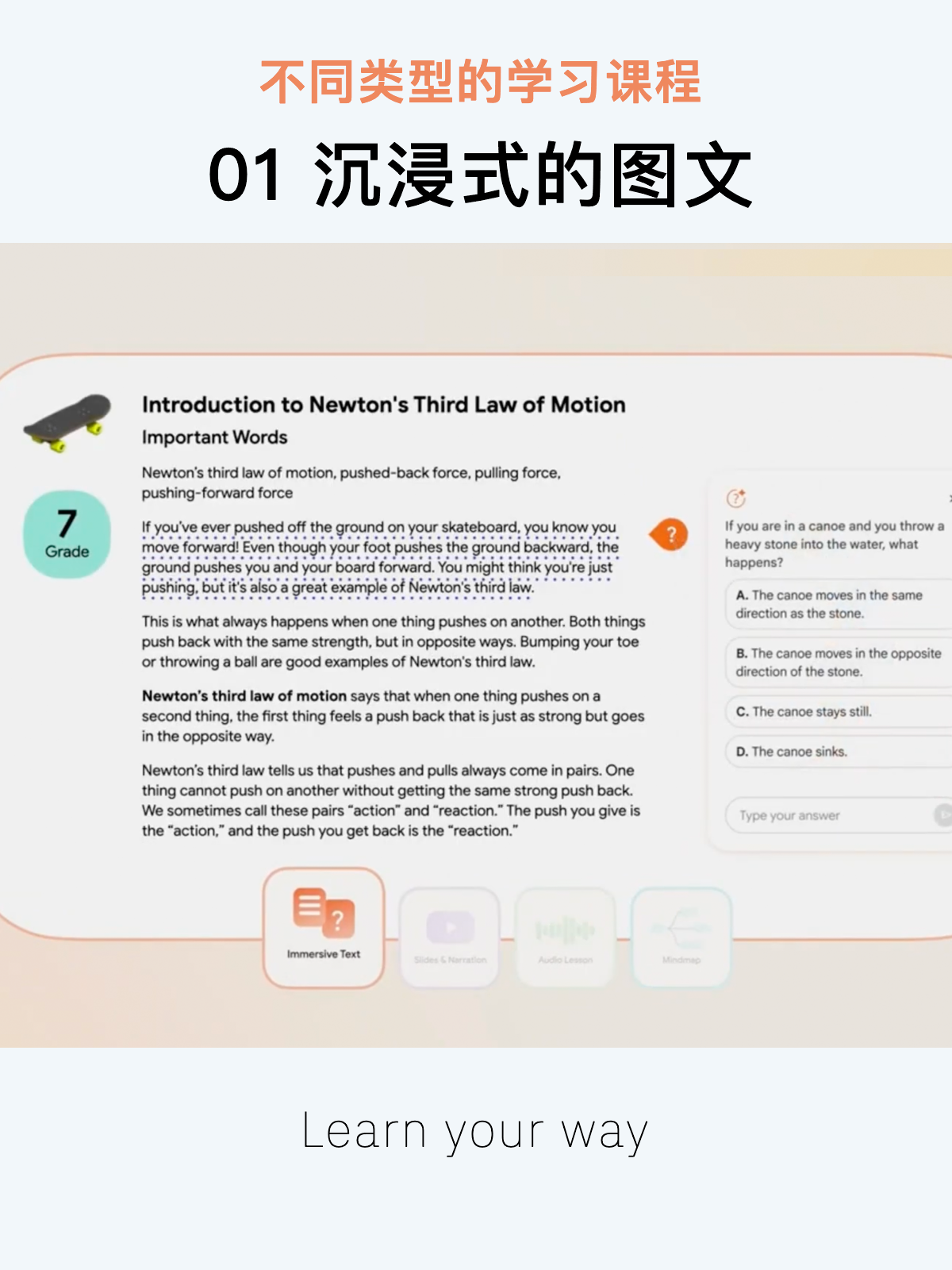 谷歌研究院发布革命性教育产品“Learn Your Way”,基于 LearnLM 技术,能将任意 PDF学习资料,基于你的教育水平和兴趣,转化为多种个性化学习格式。